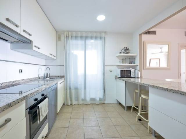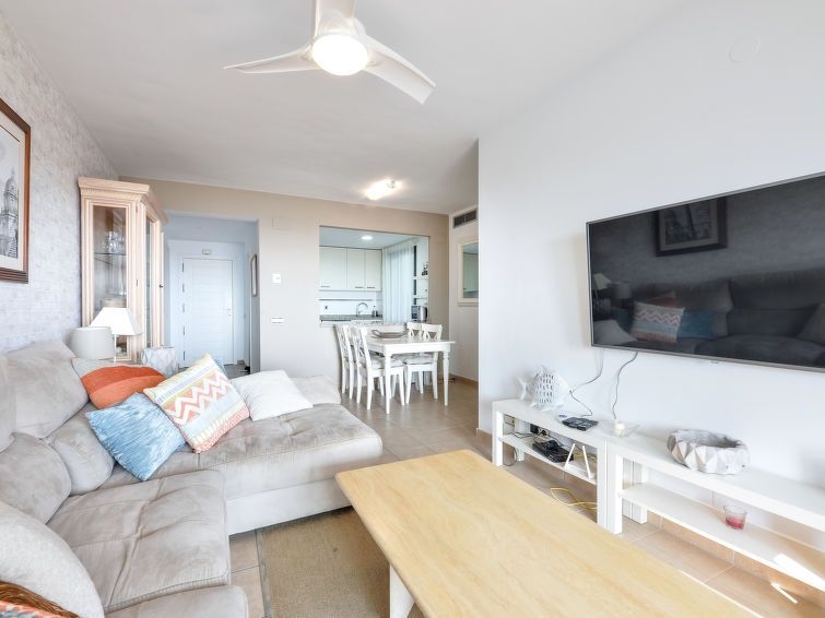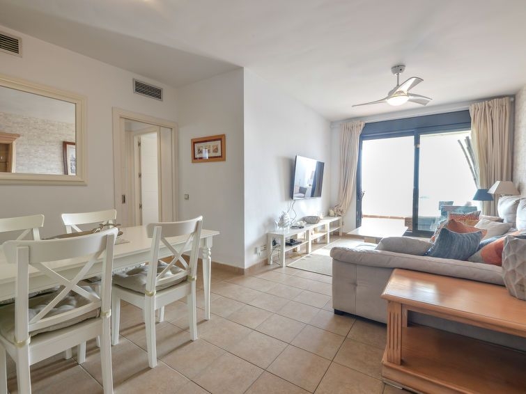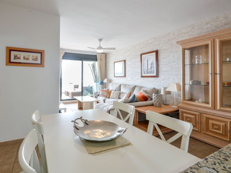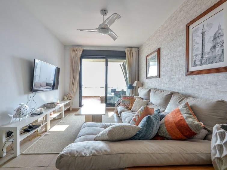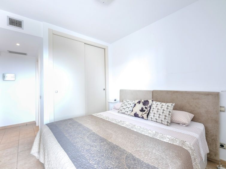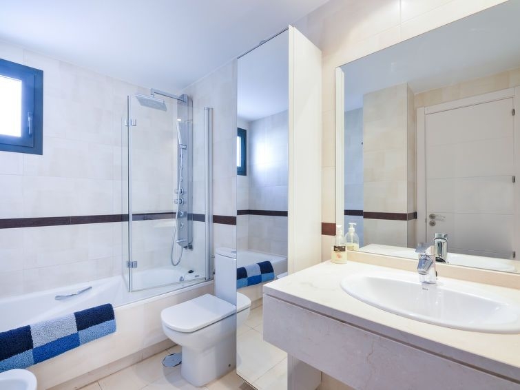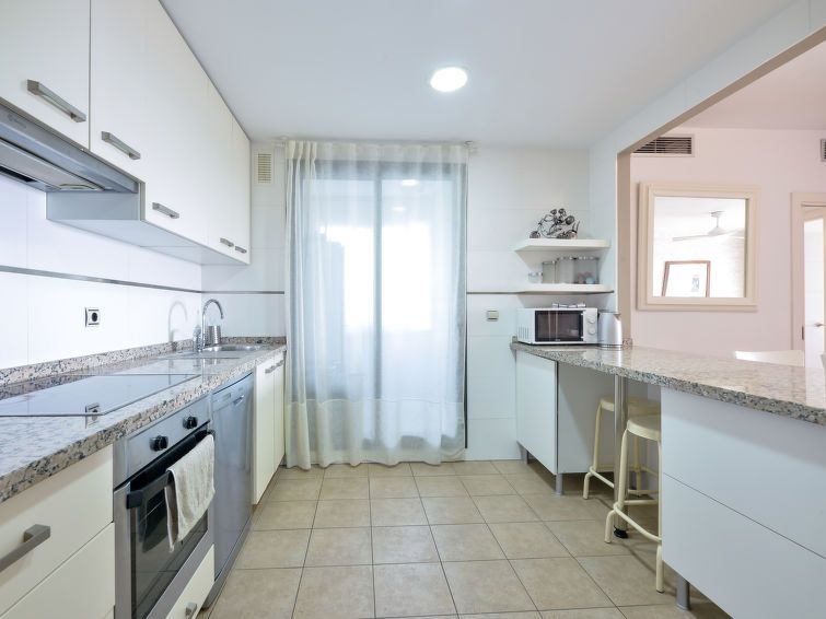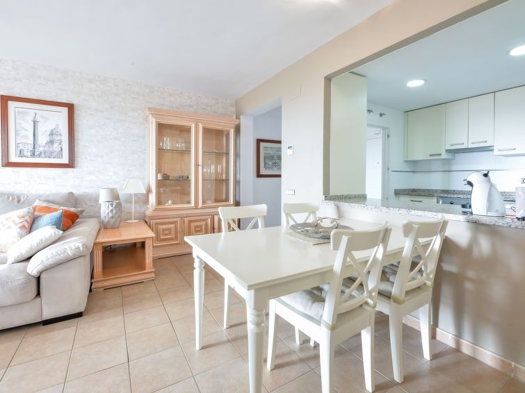 "Alamar", apartamento de 3 estancias 70 m2 en el 3° piso. Con mobiliario confortable: 1 dorm. con 2 camas (90 cm, 190 cm de longitud), baño/bidet/WC (privado) TV digital. Salida a la terraza. 1 dorm. con 2 camas (90 cm, 190 cm de longitud). Salón-comedor con TV digital. Cocina (horno, lavavajillas, 4 placas de vitrocerámica, tostadora, hervidor de agua eléctrico, microondas, congelador, cafetera eléctrica). Ducha/WC. Aire acondicionado, aire caliente. Terraza 15 m2 parcialmente cubierta. Muebles de terraza. Vista parcial al mar. El alojamiento dispone de: lavadora, plancha, secador de pelo. Internet (Wifi, gratis). Plaza de aparcamiento n. 18. 1 mascota / perro. VFT/MA/22924