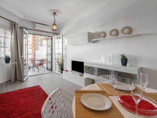 Casa de apartamentos "Pueblo Quinta", bonito, agradable. Benalmadena Costa, lugar céntrico, en el corazón de la ciudad, a 50 m del mar, a 50 m de la playa, cruzando la calle. Comunitario: jardín con césped, 2 piscinas (120 - 180 cm de profundidad, Disponible por temporada: 01.Ene. - 31.Dic.). Ducha/WC en zona de piscina. Tienda 10 m, restaurante, playa de arena 50 m. Puerto deportivo 1.5 km. Atracciones en los alrededores: Junto al Parque de la Paloma, Puerto Marina 1.5 km, Sea Life, Selwoo Marina. A tener en cuenta: sin ascensor. El propietario no acepta grupos de adolescentes/jóvenes. Vecindario muy sensible a ruidos. Se ruega respetar la tranquilidad y normas de buen comportamiento. No se permiten grupos de gente joven. No recomendable para personas con mobilidad reducida.Garage extra: 45eur plaza 38.