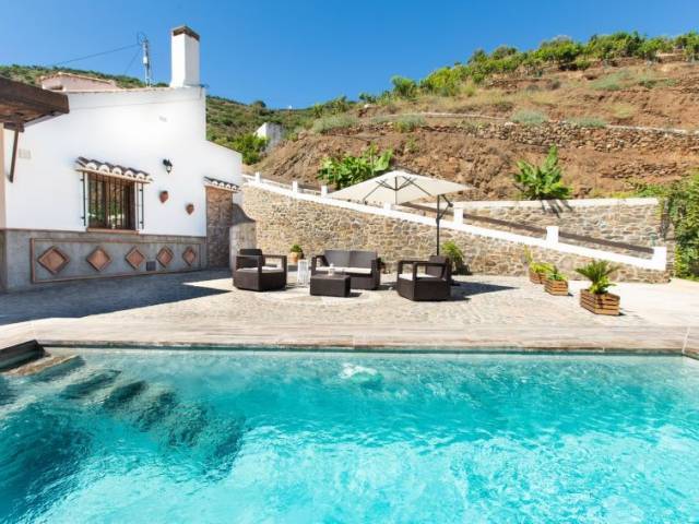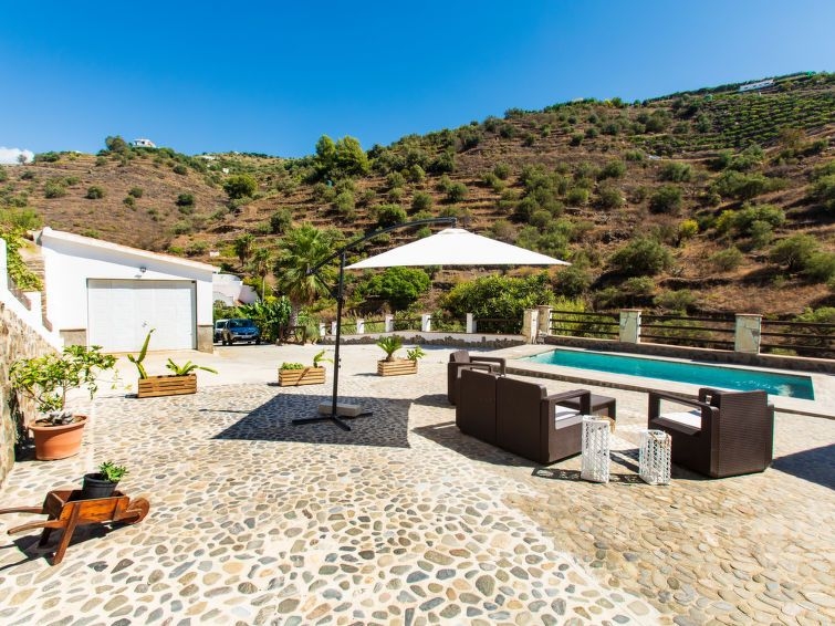 Torrox: Casa "Saeta", bonita, agradable. Privado: piscina rectangular (100 - 160 cm de profundidad, Disponible por temporada: 01.Ene. - 31.Dic.). Cenador, porche, barbacoa. En el inmueble: lavadora. Aparcamiento. Tienda 4 km, tienda de comestibles 4 km, supermercado 6 km, centro comercial 24 km, restaurante 4 km, bar 4 km, panadería 4 km, café 4 km, zona peatonal 4 km, parada de autobús "Torrox" 4 km, playa de arena "El Peñoncillo" 6 km. Puerto deportivo 26 km, campo de golf (18 hoyos) 27 km, escuela de surf 26 km. Atracciones en los alrededores: Frigiliana, Nerja, Competa, Torre del Mar, Periana, Malaga. Zonas de esquí populares fácilmente accesibles: Sierra Nevada. Lagos conocidos fácilmente accesibles: La Viñuela. Zona de senderismo Sierra Tejeda, Sierra Almijara. A tener en cuenta: coche recomendable. El propietario no acepta grupos de adolescentes/jóvenes. Carga y descarga de equipaje posible en la casa de vacaciones.