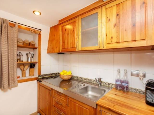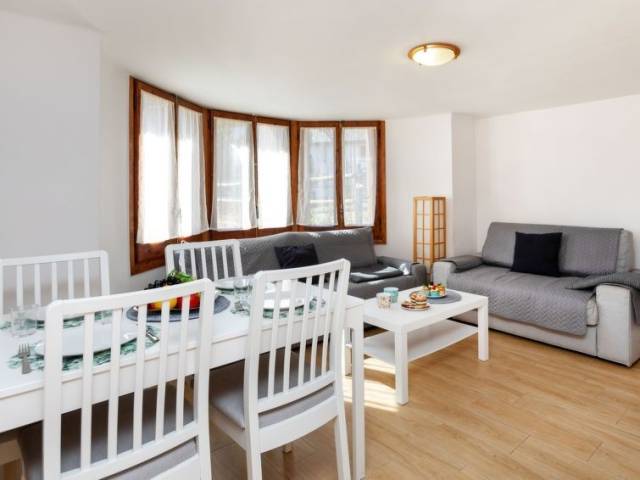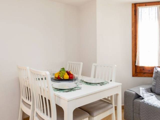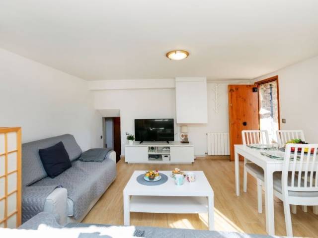 "Cau", apartamento de 2 estancias 40 m2. Con mobiliario funcional y moderno: salón-comedor con mesa de comedor, TV digital y calefacción de gas. 1 dorm. con 1 x 2 literas (90 cm, 190 cm de longitud), 1 cama de matrimonio (135 cm, 190 cm de longitud), calefacción de gas. Cocina (2 fogones, horno, tostadora, hervidor de agua eléctrico, microondas, cafetera eléctrica, Cápsulas de café (Nespresso) extra). Baño/WC. Vista a las montañas. Plaza de aparcamiento (vallada, 1 coche). HUTG-059871