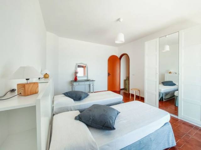 "Santa Maria", casa pareada 4 estancias 150 m2 en 2 plantas. Con mobiliario confortable y de buen gusto: salón-comedor grande con chimenea y TV satélite (pantalla plana), ventilador. Salida a la terraza. Pequeña cocina (4 fogones, horno, lavavajillas, microondas, congelador, cafetera eléctrica). Salida a la terraza-jardín. Ducha/WC. Calentador (80 litros). Planta superior: 1 dorm. doble. Salida al balcón. 2 dorm., cada habitación con 2 camas. Salida al balcón. Baño/ducha/WC, doble lavabo, bañera de hidromasaje. Calentador (80 litros). Ningún tipo de calefacción. Balcón 3 m2, balcón 10 m2, terraza grande 70 m2, terraza-jardín 3 m2. Muebles de terraza. Vista panorámica espléndida al mar. El alojamiento dispone de: lavadora, plancha, secador de pelo. Internet (Wifi, gratis). Plaza de aparcamiento (1 coche). Permitido máximo 1 mascota / perro. CIR:19083011C222903