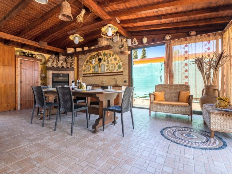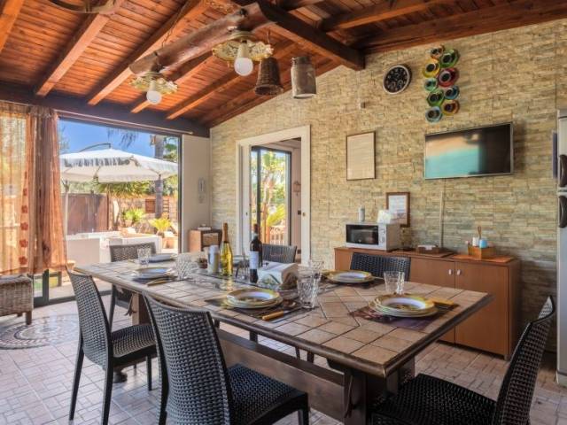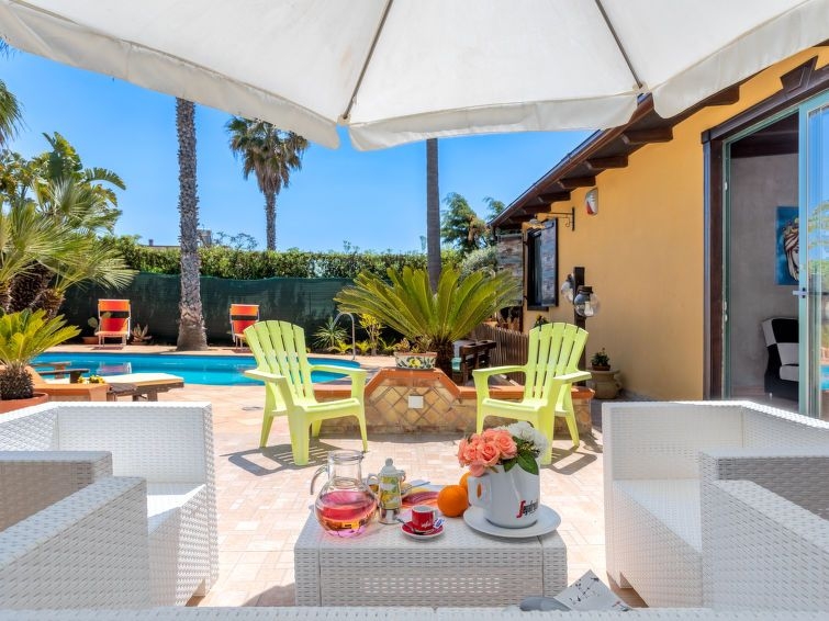 Villa "Albert", reformada en 2023. En el aldea Cannatello, a 8 km del centro de Agrigento, lugar tranquilo, soleado, a 1.5 km del mar, a 1.5 km de la playa. Privado: terreno 1'000 m2 (vallada), jardín 70 m2 con plantas y árboles, piscina (10 x 5 m, 160 cm de profundidad, Disponible por temporada: 01.Abr. - 30.Oct.). Ducha exterior, muebles de jardín, barbacoa, aparcamiento en el mismo terreno. Tienda 1 km, tienda de comestibles 1 km, supermercado 1 km, restaurante 1 km, parada de autobús 500 m, estación de tren "Agrigento" 8 km, playa de arena "San Leone" 1.5 km. Atracciones en los alrededores: Valle dei Templi 5 km, Casa Natale di Luigi Pirandello 10 km, Scala dei Turchi 16 km, Eraclea Minoa 40 km, Sciacca 68 km, Piazza Armerina/Villa Romana del Casale 100 km. A tener en cuenta: coche recomendable. Residencia con puertas de cierre eléctrico. Villa 3 estancias 120 m2. Con mobiliario confortable y de buen gusto: salón con 1 sofá-cama doble, aire acondicionado y bomba de calor, caliente. Salida a la piscina. 2 dorm. dobles, cada habitación con TV satélite (pantalla plana), aire acondicionado y bomba de calor, caliente. Grande cocina (4 fogones, tostadora, hervidor de agua eléctrico, microondas, cafetera eléctrica, horno para pizza) con mesa de comedor, TV satélite (pantalla plana). Salida al jardín, a la piscina. Ducha/WC. Aire acondicionado, aire caliente, calentador (50 litros). Muebles de terraza, barbacoa, tumbonas (5). Vista a la piscina y al jardín. El alojamiento dispone de: lavadora, plancha, cuna hasta 2 años, secador de pelo. Internet (Wifi, gratis). Plaza de aparcamiento (1 coche). CIR:19084001C209734