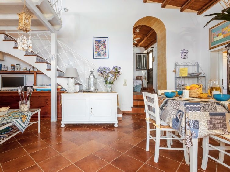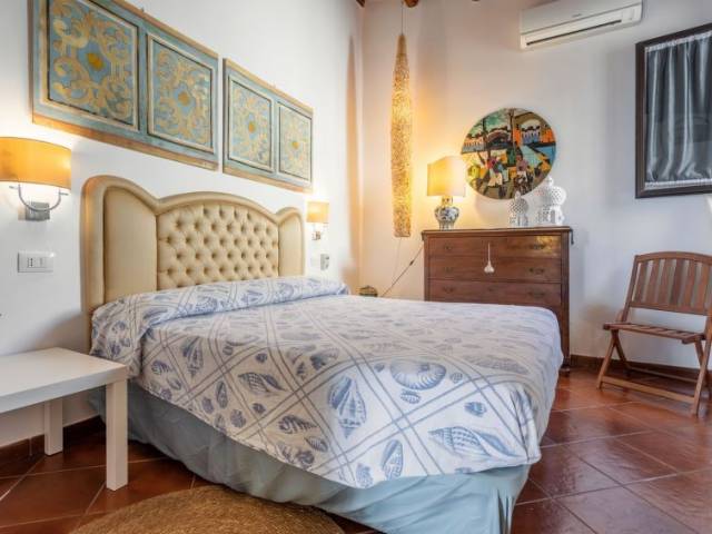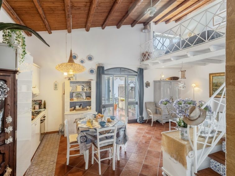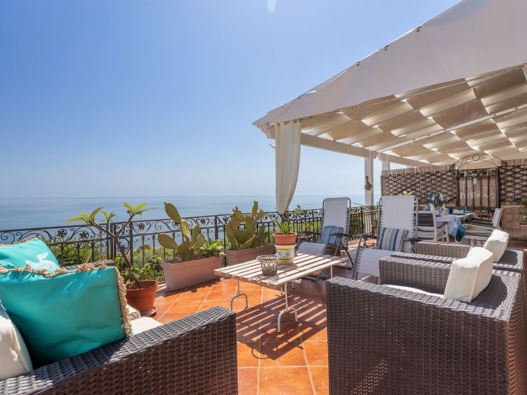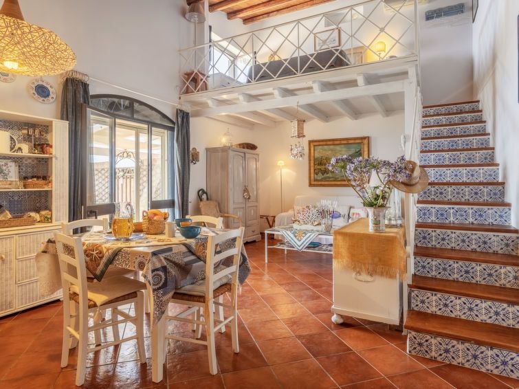 Casa 3 estancias 80 m2, en la planta baja, orientación sur. Con mobiliario confortable y de buen gusto: salón-comedor con 1 sofá-cama doble y TV satélite (pantalla plana), aire acondicionado, ventilador y bomba de calor, caliente. Salida a la terraza. Altillo, altura de techo 280 - 190 cm con 1 cama doble. 1 dorm. doble con ducha/WC, aire acondicionado, ventilador y bomba de calor, caliente. (4 fogones, horno, tostadora, hervidor de agua eléctrico, congelador). Ducha/bidet/WC. Calentador (50 litros). Terraza grande 40 m2 parcialmente cubierta. Muebles de terraza. Vista panorámica muy bonita al mar. El alojamiento dispone de: lavadora, plancha, mosquitera, cuna hasta 2 años (extra), secador de pelo. Internet (Wifi, gratis). Plaza de aparcamiento (1 coche). CIR:19084023C214875