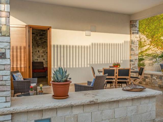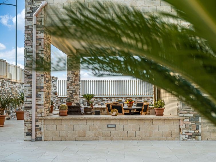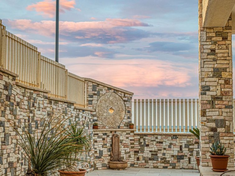 Villa 3 estancias 85 m2. Con mobiliario confortable y de buen gusto: salón-comedor con 1 sofá-cama doble y TV (pantalla plana), aire acondicionado y bomba de calor, caliente. Salida a la terraza. 1 dorm. doble con Vestidor con TV (pantalla plana). 1 dorm. con 1 x 2 literas. Rincón-cocina (4 fogones, horno, lavavajillas, tostadora, hervidor de agua eléctrico, microondas, congelador, cafetera eléctrica). Ducha/bidet/WC. Calentador (80 litros). Calefacción no en todas las estaciones. Terraza grande 30 m2, cubierta. Muebles de terraza, barbacoa. Vista al mar. El alojamiento dispone de: lavadora, plancha, mosquitera, trona, cuna hasta 2 años (extra), secador de pelo. Internet (Wifi, gratis). Plaza de aparcamiento (2 Coches). CIR:19082007B401812