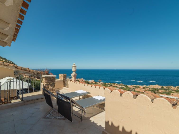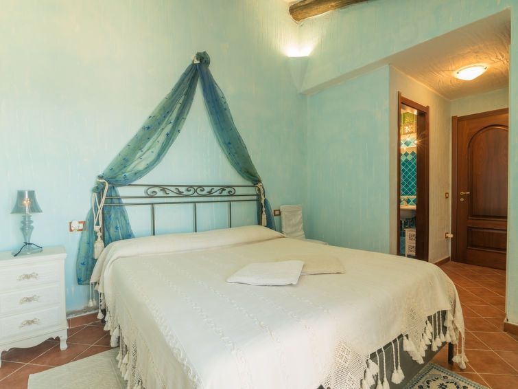 "Villa Ilaria", casa 3 estancias. Salón-comedor abierto con balcón acristalado, puerta corredera, ventanal con 1 sofá-cama doble y chimenea (sólo con función decorativa), TV satélite (pantalla plana), aire acondicionado. Salida a la terraza. 1 dorm. doble con ducha/bidet/WC. Salida a la terraza. 1 dorm. con 2 x 2 literas, aire acondicionado. Salida a la terraza. Cocina (4 fogones, horno, tostadora, hervidor de agua eléctrico, congelador, cafetera eléctrica). Ducha/bidet/WC. Muebles de terraza, barbacoa. Vista espléndida al mar. El alojamiento dispone de: lavadora. No adecuado para niños pequeños. R0426