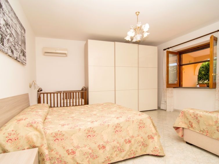 Casa 4 estancias 100 m2. Parcialmente reformada en 2022, con mobiliario confortable y rústico: comedor abierto pequeño con TV (pantalla plana), aire acondicionado. 1 dorm. doble, grande con 1 sofá-cama doble y aire acondicionado. 1 dorm. con 2 camas, ducha/bidet/WC y aire acondicionado. 1 dorm. con 2 camas. Salida a la terraza-jardín. Cocina abierta (4 fogones, horno, microondas, congelador, cafetera eléctrica). Salida al jardín. Baño/bidet/WC. Aire acondicionado, aire caliente. Calefacción disponible desde el 01.11. al 31.03, Calefacción no en todas las estaciones. Terraza grande, terraza-jardín grande. Muebles de terraza, tumbonas. Vista panorámica al paisaje y a la localidad. El alojamiento dispone de: lavadora, mosquitera, secador de pelo. Internet (Wifi, gratis). Plaza de aparcamiento n. 4 (vallada). Adecuado para familias. La disponibilidad de las camas es flexible. Aunque haya más camas disponibles que la ocupación máxima, esta no se puede exceder. No hay costos locales adicionales, excepto la tasa local de turismo. 15063044EXT0016