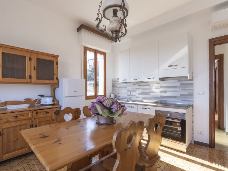 "Paradise View", apartamento de 4 estancias 120 m2 en el 1° piso. Luminoso, reformado en 2023, con mobiliario de buen gusto y agradable: salón-comedor con 1 sofá-cama doble (140 cm, 200 cm de longitud). Salida al balcón. 1 dorm. doble. Salida al balcón. 1 dorm. doble. Salida al balcón. 1 dorm. con 1 x 2 literas (90 cm, 200 cm de longitud). Rincón-cocina (horno, lavavajillas, 4 placas de vitrocerámica, tostadora, hervidor de agua eléctrico). Salida al balcón. Ducha/bidet/WC. Aire acondicionado, aire caliente. Calefacción disponible desde el 01.11. al 31.03. Balcón grande 40 m2. Muebles de balcón. Vista panorámica muy bonita al mar y a la localidad. El alojamiento dispone de: lavadora, trona, cuna hasta 2 años, secador de pelo. Internet (Wifi, gratis). Plaza de aparcamiento junto a la casa. A tener en cuenta: adecuado para familias. Entrada privada. No hay conexión interna entre las plantas. CITRA:008026-LT-0069