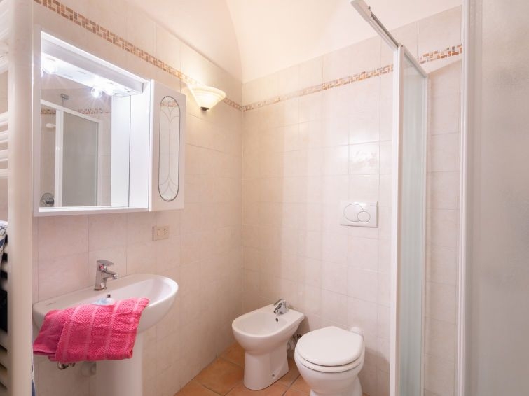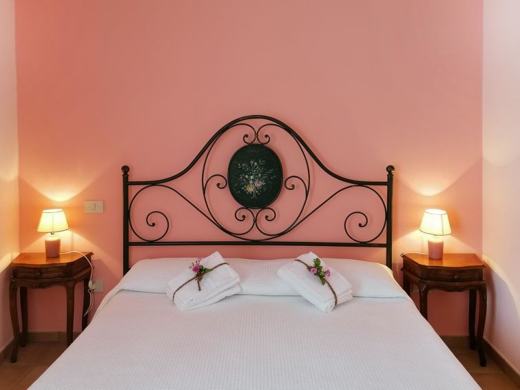 "Rosa", apartamento de 3 estancias 80 m2 en el 1° piso. Espacioso y luminoso, con mobiliario de buen gusto: 1 dorm. doble con 1 cama doble (160 cm). Salida a la terraza. 1 dorm. con 1 cama doble (160 cm), 1 plegatín (90 cm). Cocina-comedor (horno, Estufa de gas, 4 fuegos, tostadora, hervidor de agua eléctrico, cafetera eléctrica) con mesa de comedor, 1 sofá-cama doble (140 cm). Ducha/bidet/WC. Calefacción de gas. Suelo de piedra natural. Terraza 15 m2. Muebles de terraza. Vista panorámica espléndida al mar y a las montañas. El alojamiento dispone de: lavadora, plancha, trona, cuna, secador de pelo. Internet (Wifi). 1 mascota / perro. CITRA:008064-AGR-0001