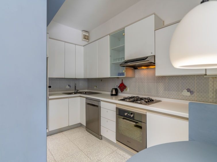 "Al mare da Ce", apartamento de 4 estancias 100 m2 en el 2° piso. Luminoso, con mobiliario funcional y agradable: salón-comedor. Salida al balcón. 1 dorm. doble. 1 dorm. con 2 camas (90 cm, 200 cm de longitud). Salida al balcón. 1 dorm. con 1 x 2 literas (90 cm, 200 cm de longitud). Cocina abierta (horno, lavavajillas, 4 fuegos, tostadora, hervidor de agua eléctrico). Salida al balcón. Ducha/bidet/WC. Calefacción de gas. Calefacción disponible desde el 15.10. al 30.04. Balcón 30 m2. Muebles de balcón. Vista a la localidad. El alojamiento dispone de: lavadora, cuna hasta 2 años. Internet (Wifi, gratis). 1 mascota / perro. CITRA:08059-LT-0404