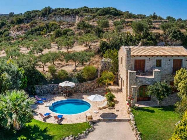 Villa "Lofos", bonita, confortable de 2 plantas, individual del año 2010, reformada en 2017, rodeada de campos. En el barrio de Agia Triada, lugar tranquilo, soleado, a 5.9 km del mar, a 5.9 km de la playa. Privado: jardín grande con flores y árboles, terreno con hierba, piscina redonda (36 m2, 150 cm de profundidad, Disponible por temporada: 01.Abr. - 31.Oct.). Cambio de sábanas 2 vez por semana. Cambio de toallas 2 veces por semana. Limpieza 2 veces por semana. Aparcamiento junto a la casa. Tienda de comestibles 5.6 km, supermercado 5.6 km, restaurante 5.6 km, panadería 5.6 km, café 5.6 km, playa de arena "Adelianos Kampos" 5.9 km. Centro ecuestre 7.3 km. Atracciones en los alrededores: Monastery of Arkadi 15 km, Eleftherna Archaeological Museum 21 km, Military Museum of Chromonastiri 15 km, Melidoni Cave 26 km, Rethymnon Old City 12 km. A tener en cuenta: coche recomendable. Adecuado para familias, equipamiento para bebés a demanda (incluido). Grupos de jóvenes sólo bajo petición. Se pueden reservar alojamientos adicionales. La propiedad con ref: GR6506.16.1 está situada en la misma parcela. "Lofos", villa 4 estancias 130 m2 en 2 plantas. Espacioso y luminoso, con mobiliario confortable y bonito: salón abierto con chimenea, TV satélite, radio y CD. Salida a la terraza, a la piscina. 1 dorm. doble con 2 camas. Cocina abierta (horno, lavavajillas, microondas, cafetera eléctrica) con mesa de comedor. Ducha/WC. Aire acondicionado. Planta superior: (escaleras sin barandilla) 1 dorm. con 1 cama doble y baño/WC. Salida al balcón. 1 dorm. con 1 cama doble y ducha/WC. Salida al balcón. Balcón grande balcón pequeño terraza. Barbacoa, rincón para sentarse. Vista bonita a las montañas y al paisaje. El alojamiento dispone de: lavadora, caja fuerte, plancha, secador de pelo. Internet (Wifi, gratis). 1041K91002923800