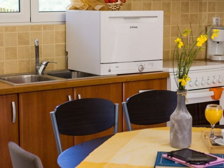 "Vlichada", villa 4 estancias 100 m2 en 2 plantas. Espacioso y luminoso, con mobiliario confortable y bonito: salón-comedor abierto con mesa de comedor y TV satélite (pantalla plana), DVD. Salida a la terraza, a la piscina. 1 dorm. con 1 cama doble. Cocina abierta (horno, lavavajillas, 4 placas de vitrocerámica, microondas, cafetera eléctrica). Ducha/WC. Aire acondicionado. Planta superior: (escaleras sin barandilla) 1 dorm. doble con 2 camas. Salida al balcón. 1 dorm. con 1 cama doble. Salida al balcón. Ducha/WC. Aire acondicionado. 2 balcones, terraza grande. Barbacoa. Vista bonita al mar y al paisaje. El alojamiento dispone de: lavadora, plancha, secador de pelo. Internet (Wifi, gratis). A tener en cuenta: casa para no fumadores. 1041K91003029901