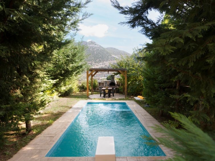 "Melodia", villa 4 estancias 113 m2 en 2 plantas. Con mobiliario muy confortable y bonito: salón abierto con TV satélite (pantalla plana), radio, CD y DVD. Salida al jardín, a la piscina. Cocina abierta (horno, lavavajillas, 4 placas de vitrocerámica, microondas, cafetera eléctrica) con mesa de comedor. WC separado. Aire acondicionado. Planta superior: (escaleras sin barandilla) 1 dorm. doble con 2 camas. Salida al balcón. 2 dorm. dobles, cada habitación con 1 cama doble. Salida al balcón. Baño/WC. Aire acondicionado. Balcón grande. Vista panorámica muy bonita a las montañas y al paisaje. El alojamiento dispone de: lavadora, caja fuerte, plancha, secador de pelo. Internet (Wifi, gratis). 1041K91002952601