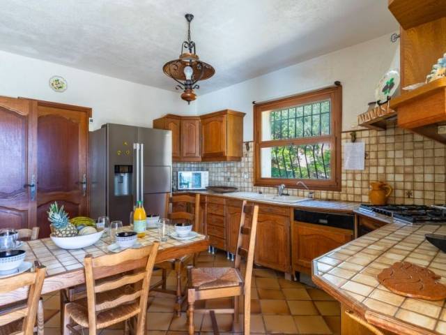 Cavalière a 8 km de Le Lavandou: Villa "Maison de l'Hubac Bleu", sencilla, confortable de 2 plantas del año 1985. Lugar tranquilo en una pendiente, a 1.5 km del mar, a 1.5 km de la playa, orientación sur. Privado: terreno en estado natural 1'000 m2, patio, piscina cubierta rectangular, protegida (11 x 5 m, 80 - 200 cm de profundidad, Disponible por temporada: 15.May. - 30.Sep.). Aparcamiento. Tienda de comestibles 1 km, restaurante 800 m, playa de arena "Cavalière" 1.1 km. Atracciones en los alrededores: St Tropez 35 km, Magic World 32 km, Le Jardin des Méditerranées 8 km. Zona de senderismo Sentiers du Littoral. La entrega de llaves se realiza por la agencia Interhome en Le Lavandou, 8 km.
