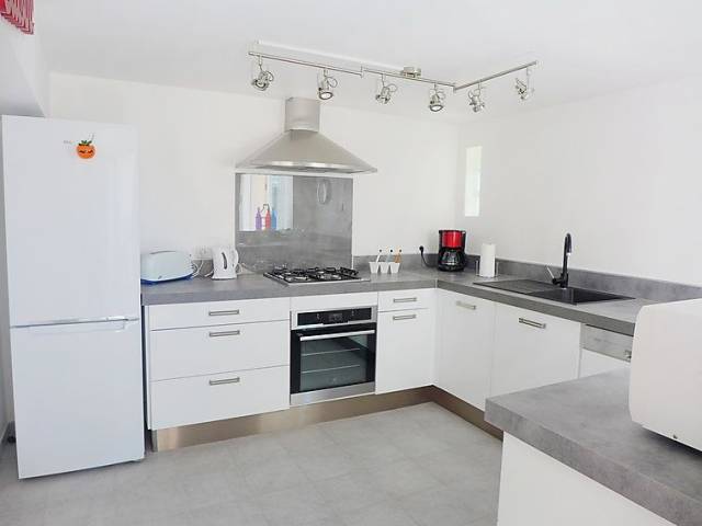 Apartamento de 3 estancias 85 m2, en la planta baja. Con mobiliario confortable: salón-comedor con 1 sofá-cama doble (160 cm, 190 cm de longitud), TV (pantalla plana). Salida a la terraza. 1 dorm. con 1 cama de matrimonio (140 cm, 190 cm de longitud), TV (pantalla plana). 1 dorm., ventana al salón con 1 cama de matrimonio (140 cm, 190 cm de longitud). Cocina abierta (4 fogones, horno, lavavajillas, microondas, congelador, cafetera eléctrica). Ducha/WC. Calefacción eléctrica. Terraza 60 m2, orientación sur. Muebles de terraza, barbacoa, tumbonas. Vista al valle. El alojamiento dispone de: lavadora, plancha, cuna hasta 2 años. Internet (Wifi, gratis). A tener en cuenta: 1 mascota / perro. TV solamente FR. Detector de humo. 83035 000022 KS