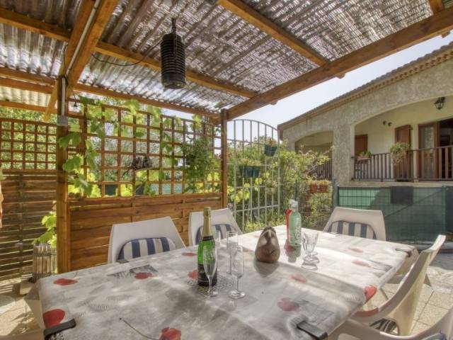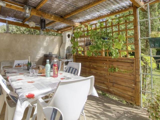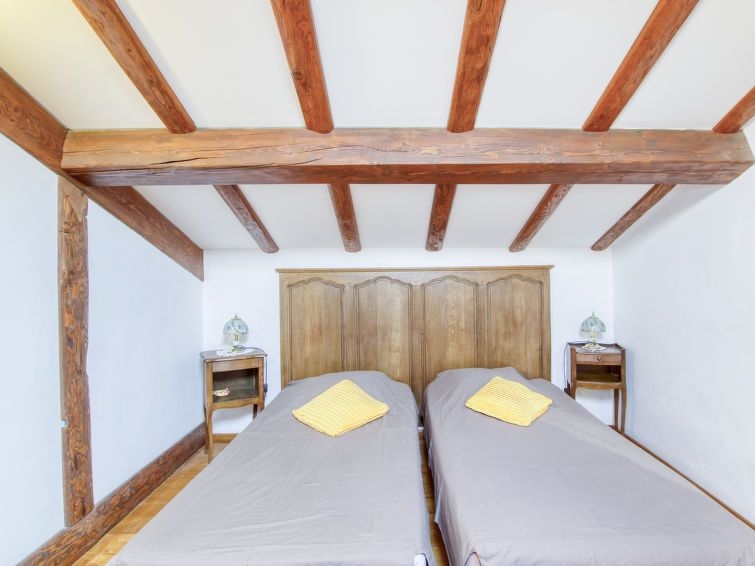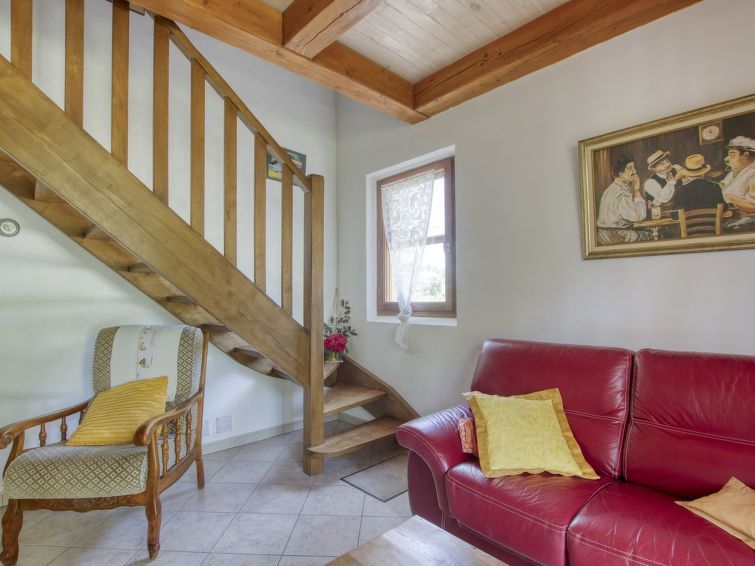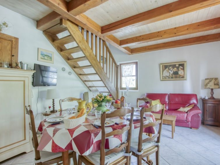 Casa adosada 4 estancias 72 m2 en 2 plantas, en planta baja elevada. Parcialmente abuhardillada, con mobiliario funcional y bonito: salón-comedor con TV (pantalla plana). Salida al balcón. 1 dorm. con 1 cama de matrimonio (1 x 140 cm, 200 cm de longitud). Cocina abierta (4 fogones, horno, lavavajillas, microondas, congelador, cafetera eléctrica). Ducha, WC separado. Planta superior: habitación de paso, altura de techo 140 - 210 cm con tragaluz con 2 camas (90 cm, 200 cm de longitud). 1 dorm., abuhardillado altura de techo 140 - 220 cm con tragaluz con 2 camas (90 cm, 190 cm de longitud), ducha/WC. Aire acondicionado, calefacción por suelo. Balcón 15 m2, orientación sur, terraza 20 m2, cubierta, terraza-jardín 20 m2. Muebles de terraza, barbacoa eléctica. Vista al jardín. El alojamiento dispone de: lavadora, plancha, cuna hasta 2 años. Internet (Wifi, gratis). Plaza de aparcamiento (2 Coches) junto a la casa. A tener en cuenta: TV solamente FR. Detector de humo. 83035 000026 UT