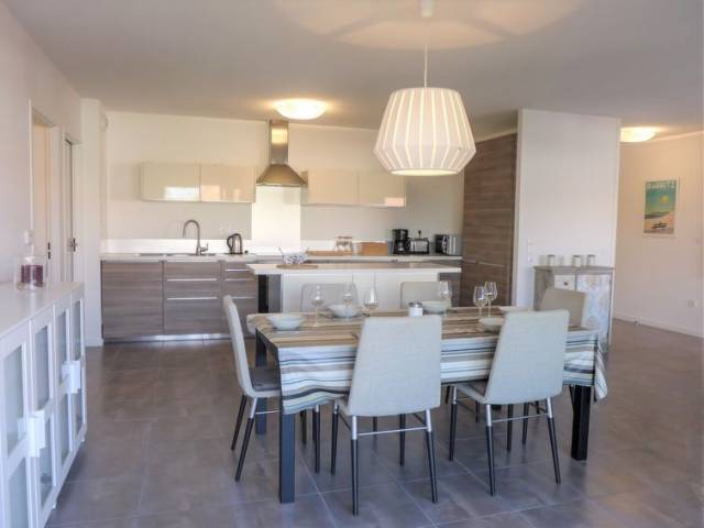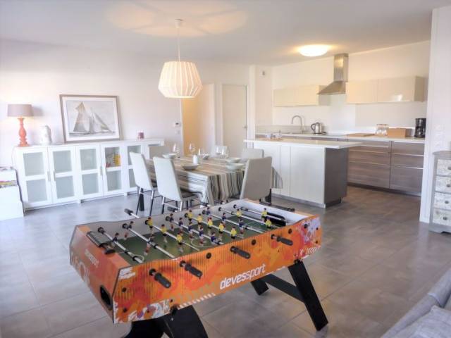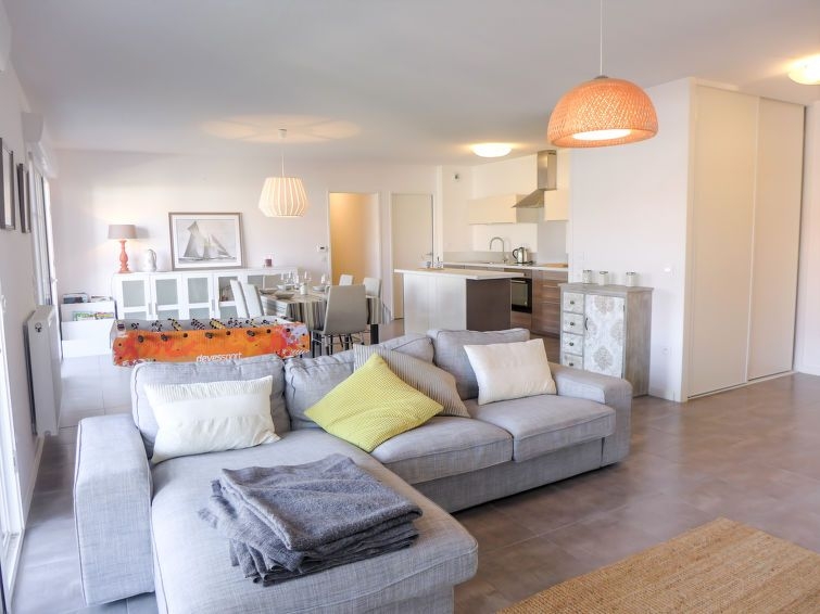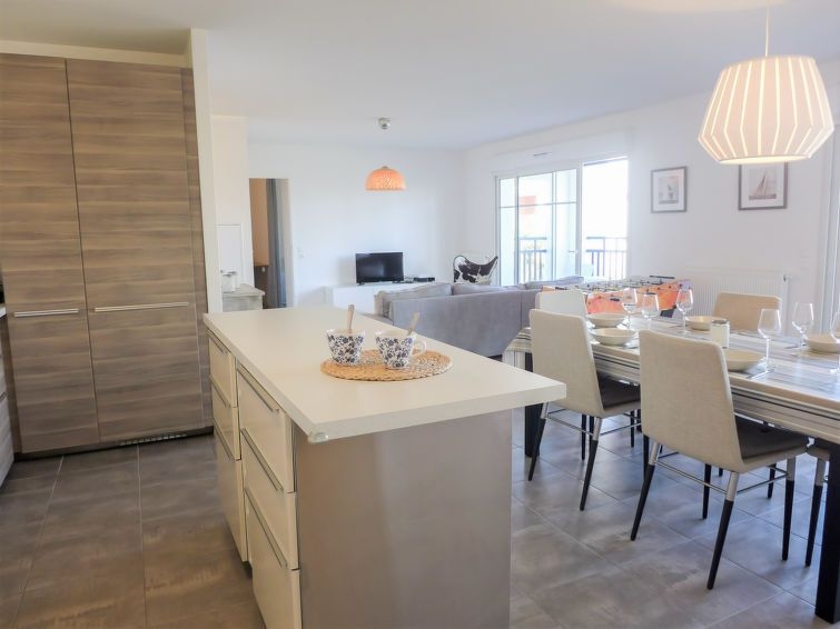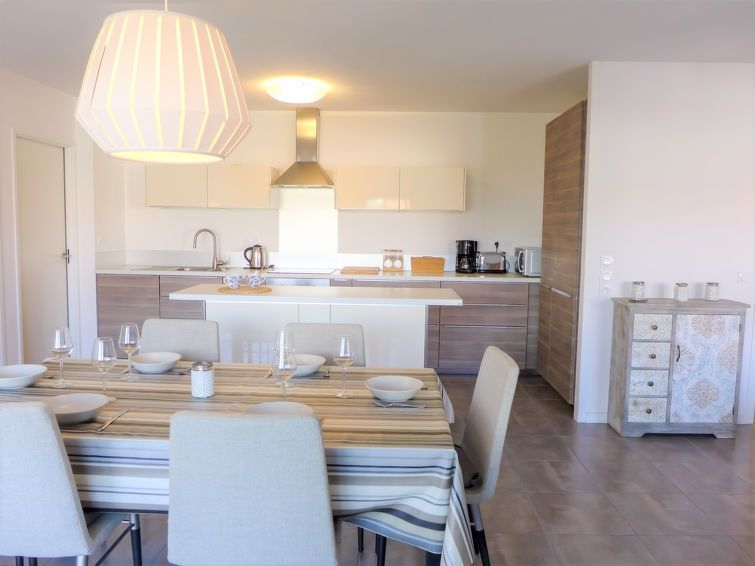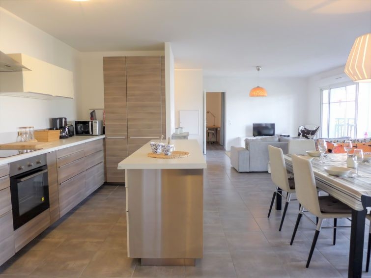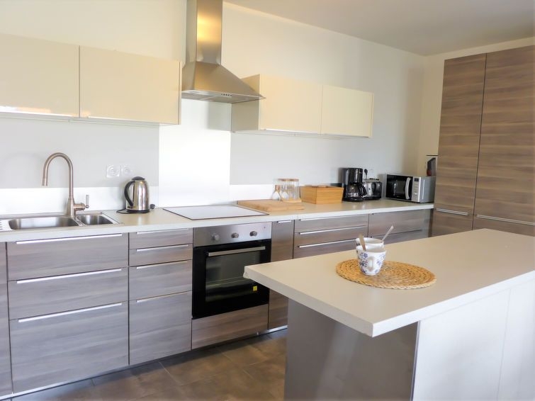 Apartamento de 4 estancias 107 m2 en el 2° piso. Vivienda adecuada para 4 adultos + 2 niños. Espacioso y luminoso, con mobiliario confortable y moderno: salón-comedor con TV (pantalla plana). Salida a la terraza, orientación este. 1 dorm. con 1 cama de matrimonio (1 x 160 cm, 190 cm de longitud), ducha/WC. 1 dorm. con 1 cama de matrimonio (1 x 140 cm, 190 cm de longitud). 1 dorm. con 1 cama-nido (2 pers. 2 x 90 cm, 190 cm de longitud). Cocina abierta (horno, lavavajillas, 3 Placas de inducción, microondas, congelador, horno Raclette). Ducha, WC separado. Calefacción de gas. Terraza 20 m2. Muebles de terraza. El alojamiento dispone de: lavadora, secadora, plancha. Internet (Wifi, gratis). Plaza de aparcamiento n. 22 (cubierto). A tener en cuenta: apartamento para no fumadores. Detector de humo. 64125001740E9