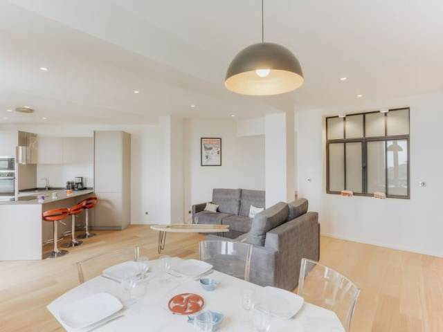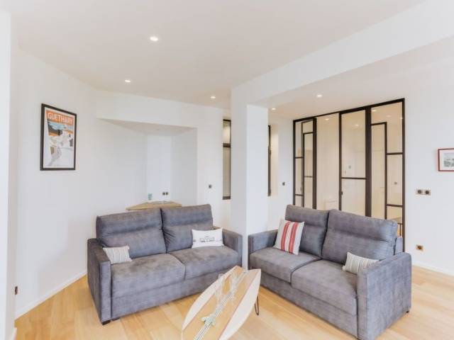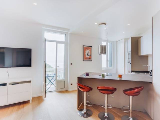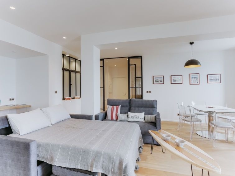 Guethary a 1 km de Bidart: Casa con varias viviendas "Getaria", bonita de 6 plantas. Lugar céntrico, soleado, a 20 m del mar, a 20 m de la playa, cruzando la calle. En el complejo: ascensor. Posibilidad de aparcamiento 20 m. Tienda 100 m, tienda de comestibles 170 m, restaurante, bar, panadería, café 100 m, estación de tren "Gare de Guethary" 100 m, piscina termal "Hélianthal" 7 km. Puerto deportivo 100 m, campo de golf (9 hoyos) 5.5 km. Zona de senderismo La Rhune 13 km. A tener en cuenta: la entrega de llaves se realiza por la agencia Interhome en Bidart, 1 km. Vías del tren en la proximidad 1 km de la casa. Aeropuerto en la proximidad 10 km de la casa. Apartamento de 3 estancias 80 m2 en el 5° piso. Espacioso, con mobiliario confortable y bonito: salón-comedor con 1 sofá-cama doble (1 x 140 cm, 190 cm de longitud), TV (pantalla plana). Salida al balcón. 1 dorm. con 1 cama de matrimonio (1 x 160 cm, 200 cm de longitud). 1 dorm. con 1 cama de matrimonio (1 x 160 cm, 200 cm de longitud), ducha. Cocina abierta (horno, lavavajillas, 3 Placas de inducción, microondas, congelador, cafetera eléctrica). Ducha/WC, WC separado. Calefacción eléctrica. Balcón pequeño. Vista muy bonita a la localidad, al puerto y al mar. El alojamiento dispone de: lavadora, plancha, trona, cuna, secador de pelo. Internet (Wifi, gratis). Plaza de aparcamiento junto a la casa. A tener en cuenta: apartamento para no fumadores. Detector de humo. 64249000132B3