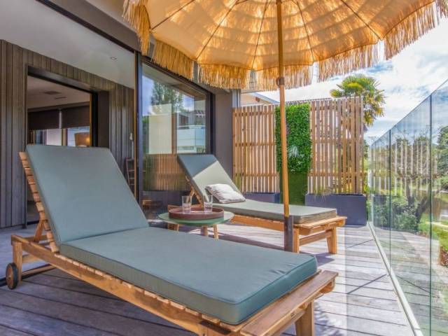 Capbreton a 3 km de Hossegor: Casa unifamiliar "Lartigau" del año 2020. A 1.5 km del centro de Capbreton, lugar tranquilo en un barrio residencial, a 2 km del mar, a 2 km de la playa, a 5 m del canal. Tienda 1.5 km, supermercado, restaurante, panadería 400 m, alquiler de bicicletas 1.5 km, playa de arena "La Piste" 2 km. Puerto deportivo 2.5 km, campo de golf (18 hoyos) 2.8 km, caminos para bicicletas 10 m. Atracciones en los alrededores: Gaillou Karting 800 m, mini golf 700 m, Tennis club 700 m. Grupos de jóvenes sólo bajo petición.