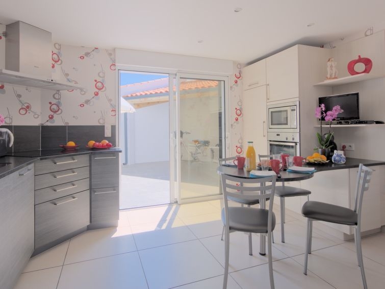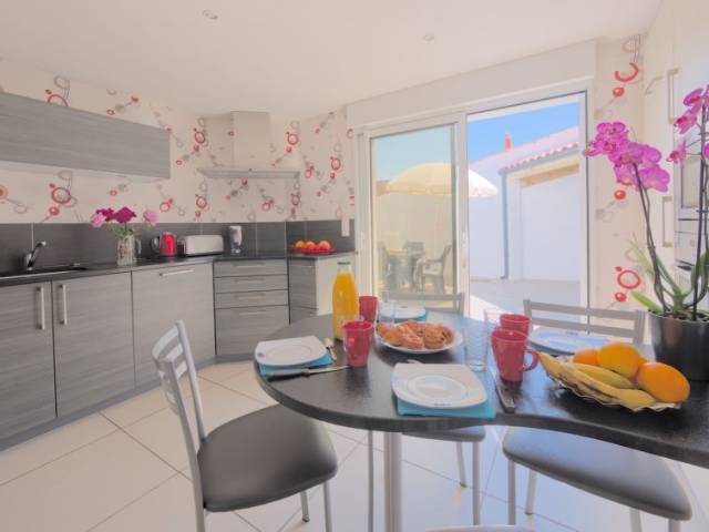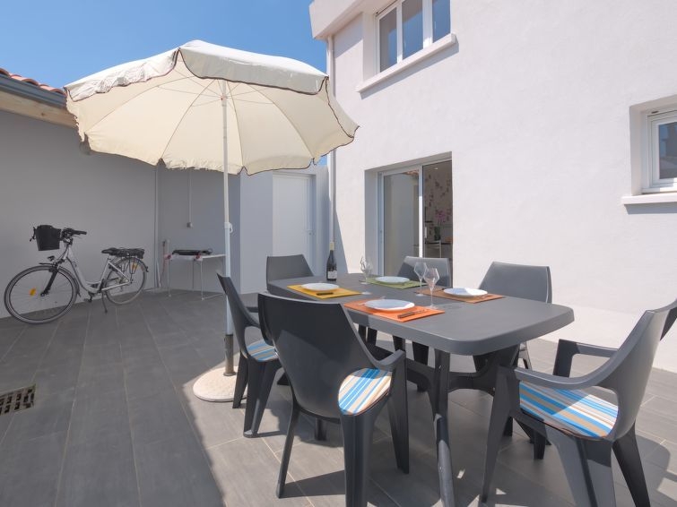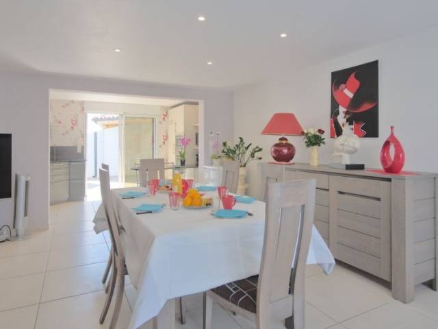 Casa "Villa Les Roses". A 1.8 km del centro de Les Sables d'Olonne, a 500 m del mar. Privado: terreno 200 m2 (vallada), aparcamiento (para 3 coches). Tienda, supermercado 400 m, parada de autobús 30 m, estación de tren "Les Sables d'Olonne" 1.8 km, playa de arena "La Grande Plage" 500 m, parque "Parc des Roses" 50 m, piscina cubierta 2.5 km, piscina termal "Thalassotherapie" 1.5 km. Puerto deportivo 2.5 km, escuela de surf 1.2 km, escuela de vela 1.2 km, tenis 1 km, caminos para bicicletas 30 m, parque infantil 50 m. Atracciones en los alrededores: Saint Gilles Croix de Vie 30 km, La Tranche sur Mer 38 km, Noirmoutier 65 km, Le Puy du Fou 90 km, Nantes 95 km. El propietario no acepta grupos de adolescentes/jóvenes.
