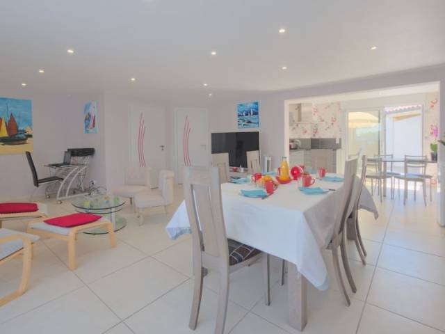 Casa 4 estancias 120 m2 en 2 plantas. Con mobiliario confortable y bonito: salón-comedor con TV (pantalla plana). Salida a la terraza. Cocina abierta (horno, lavavajillas, 3 Placas de inducción, tostadora, hervidor de agua eléctrico, microondas, congelador, cafetera eléctrica) con TV (pantalla plana). Salida a la terraza. WC separado. Planta superior: 1 dorm. con 1 cama de matrimonio (160 cm, 200 cm de longitud), TV (pantalla plana). 1 dorm. con 1 cama de matrimonio (140 cm, 190 cm de longitud), TV (pantalla plana). 1 dorm. con 1 x 2 literas (80 cm, 190 cm de longitud), 1 cama de matrimonio (140 cm, 190 cm de longitud). Baño, WC separado. Calefacción eléctrica. Terraza grande 35 m2 parcialmente cubierta, orientación sur. Muebles de terraza, barbacoa, tumbonas (2). El alojamiento dispone de: lavadora, plancha, secador de pelo. Internet (Wifi, gratis). A tener en cuenta: apartamento para no fumadores. Detector de humo. La disponibilidad de las camas es flexible. Aunque haya más camas disponibles que la ocupación máxima, esta no se puede exceder. Oferta de un particular según el art. 155, IV del CGI. 851940039372C