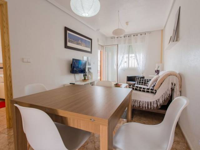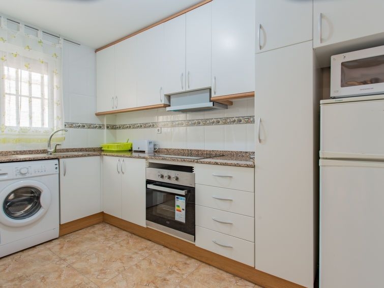 "Fragata", apartamento de 3 estancias 60 m2, en la planta baja. Vivienda adecuada para 6 adultos. Con mobiliario funcional y moderno: salón-comedor con 1 sofá-cama doble, TV digital y pantalla plana. Salida a la terraza. 1 dorm. doble con 1 cama de matrimonio (140 cm, 190 cm de longitud). 1 dorm. con 1 x 2 literas (90 cm, 190 cm de longitud). Cocina (horno, 4 placas de vitrocerámica, tostadora, hervidor de agua eléctrico, microondas, congelador, cafetera eléctrica) con mesa de comedor. Ducha/WC. Ningún tipo de calefacción. Terraza grande. Muebles de terraza. El alojamiento dispone de: lavadora, secadora, plancha. Internet (Wifi, gratis). A tener en cuenta: adecuado para familias. Apartamento para no fumadores. 1 mascota / perro. N585/2016