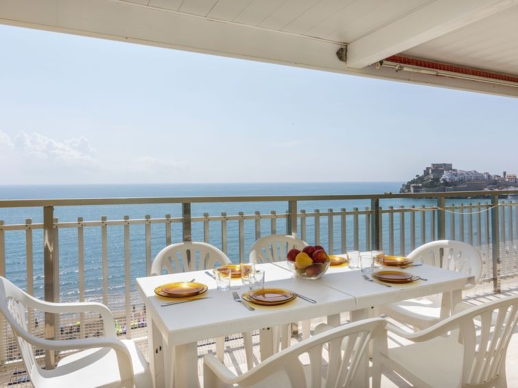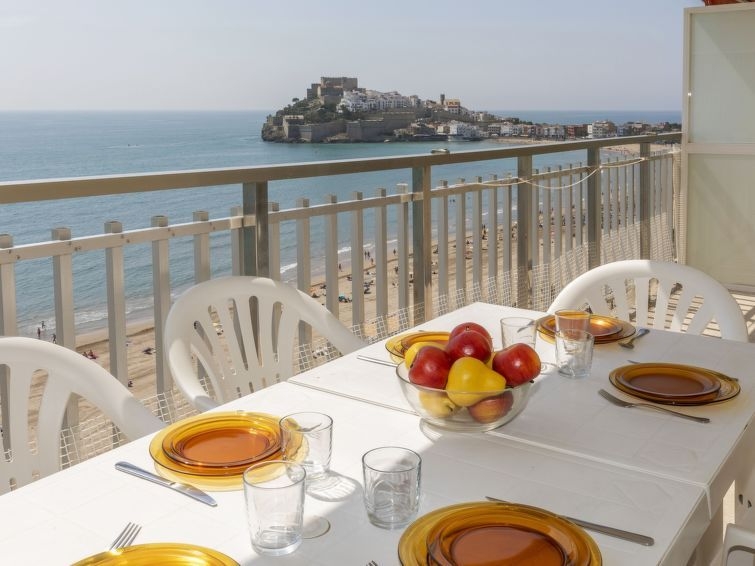 Papa Luna Peñiscola: Casa de apartamentos "Torre Hirta". Lugar animado, a 50 m del mar, a 50 m de la playa. Comunitario: piscina rectangular (24 x 9 m, Disponible por temporada: 10.Jun. - 20.Sep. horario piscina: 10:00-19:00). Piscina para niños, ducha exterior, tenis, aparcamiento n. 44. Tienda de comestibles 50 m, supermercado 100 m, restaurante, bar, café 50 m, playa de arena "Playa Norte" 50 m. Atracciones en los alrededores: Laberinto mas grande de España 8 km, Delta del Ebro 50 km, Museo Ciencia y Artes Valencia 150 km, Golf Panoramica - 18 hoyos 30 km. Zona de senderismo Sierra de Irta 9 km. A tener en cuenta: ascensor s.lo hasta el 14° piso. "Torre Hirta", apartamento de 4 estancias 87 m2. Con mobiliario confortable: salón-comedor con TV satélite, canales internacionales y ventilador. Salida a la terraza. 2 dorm., cada habitación con 2 camas (90 cm, 190 cm de longitud). 1 dorm. con 1 cama de matrimonio (1 x 135 cm, 190 cm de longitud), baño/WC. Cocina (4 placas de vitrocerámica, tostadora, microondas, congelador, cafetera eléctrica, Cápsulas de café (CAFETERA ITALIANA) extra). Ducha/WC. Calentador (80 litros). Ningún tipo de calefacción. Terraza. Vista muy bonita al mar y a la localidad. El alojamiento dispone de: lavadora, plancha, secador de pelo. Internet (Wifi, gratis). Plaza de aparcamiento n. 44. A tener en cuenta: casa para no fumadores. 1 mascota pequeña / perro. TV solamente ES. VT-34791-CS