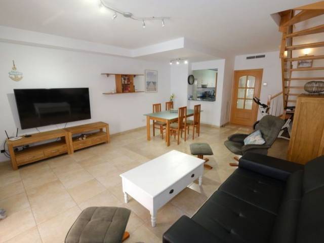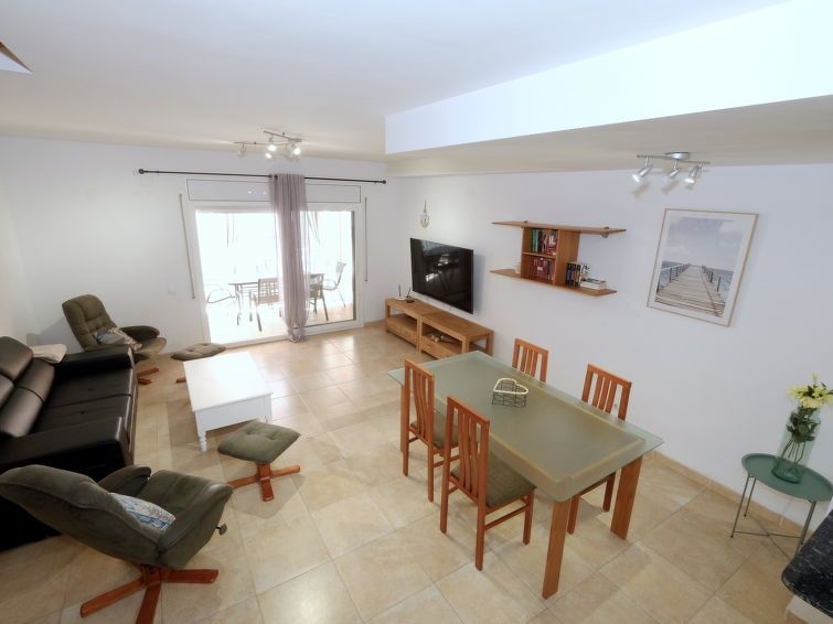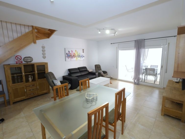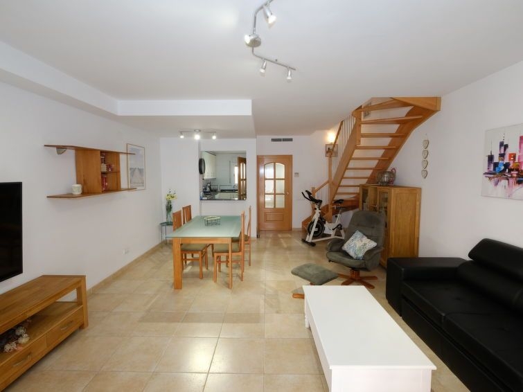 "Mare Nostrum", casa adosada 4 estancias 91 m2. Con mobiliario agradable: salón-comedor con TV satélite (pantalla plana), aire acondicionado y bomba de calor, caliente. Salida a la terraza. Cocina (horno, lavavajillas, 4 placas de vitrocerámica, tostadora, hervidor de agua eléctrico, microondas, congelador, cafetera eléctrica). Ducha/WC. Planta superior: 1 dorm. con 1 cama de matrimonio (1 x 135 cm, 190 cm de longitud), aire acondicionado y bomba de calor, caliente. Salida al balcón. 1 dorm. con 1 x 2 literas (90 cm, 190 cm de longitud), aire acondicionado. 1 dorm. con 1 cama doble (1 x 135 cm, 190 cm de longitud), aire acondicionado y bomba de calor, caliente. Baño/ducha/WC. El alojamiento dispone de: lavadora, plancha, trona, cuna hasta 2 años (extra), secador de pelo. Internet (Wifi, gratis). HUTTE061282