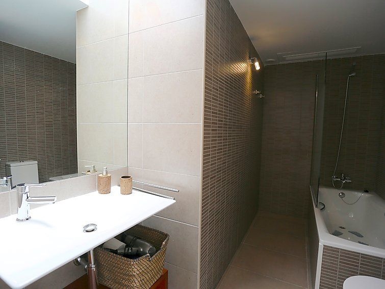 "Xaloc", casa adosada 4 estancias 115 m2 en 2 plantas. Espacioso y luminoso, con mobiliario confortable y moderno: salón-comedor con mesa de comedor, barra americana, baño/ducha/WC, TV satélite, canales internacionales, pantalla plana, DVD, estufa eléctrica y aire acondicionado. Salida a la terraza-jardín. Grande cocina abierta (horno, lavavajillas, 4 placas de vitrocerámica, microondas, congelador, cafetera eléctrica). Planta superior: 1 dorm. doble con 1 cama de matrimonio (1 x 190 cm, 150 cm de longitud). 1 dorm. doble con 1 cama de matrimonio (1 x 190 cm, 150 cm de longitud). 1 dorm. con 2 camas (190 cm, 90 cm de longitud). Baño o ducha/WC. Balcón grande. Muebles de balcón, barbacoa. Vista bonita. El alojamiento dispone de: secador de pelo. Internet (Wifi, gratis). Plaza de aparcamiento (2 Coches). Adecuado para familias. Permitido máximo 2 mascotas / perros. HUTTE003219