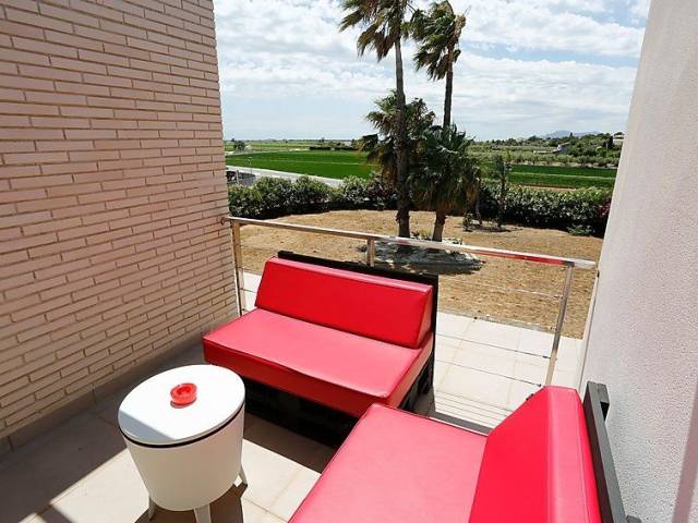 Casa adosada "Estrella", muy moderna, agradable, confortable de 2 plantas del año 2011. Area residencial (villas), a 110 m del mar, a 100 m de la playa. Comunitario: parque (vallada), jardín grande (vallado), piscina (20 x 8 m, Disponible por temporada: 01.Jun. - 30.Oct.). Ducha exterior, terraza-jardín. Privado: jardín pequeño, bonito. Terraza-jardín, muebles de jardín. En el inmueble: acceso a internet, Wifi, aire acondicionado, lavadora. Aparcamiento (para 2 coches) junto a la casa. Tienda de comestibles 1.5 km, restaurante 800 m. Puerto deportivo 2 km, campo de golf (18 hoyos) 5 km, escuela de surf 20 km. Atracciones en los alrededores: Port Aventura 60 km, Parque natural Delta del Ebro 20 km. A tener en cuenta: coche recomendable.