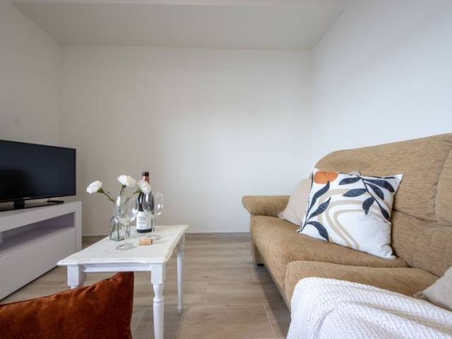 MERCE: Casa semiadosada "MERCE", bonita, agradable. En la localidad, a 1 km del centro de l'Ampolla, lugar soleado, a 41 m del mar, a 250 m de la playa, cruzando la calle, orientación sur. Privado: terraza, muebles de jardín, aparcamiento, garaje comunitario n. 33 junto a la casa. Tienda de comestibles 1 km, centro comercial 1 km, restaurante 50 m. Atracciones en los alrededores: Parque Natural del Ebro 5 km, parque Portaventura 65 km, Pitch & Putt 2 km. "MERCE", casa 4 estancias 41 m2. Con mobiliario funcional y confortable: salón con TV digital. 2 dorm., cada habitación con 1 cama de matrimonio (135 cm, 190 cm de longitud). 1 dorm. con 1 cama (90 cm, 180 cm de longitud). Cocina (2 placas de vitrocerámica, tostadora, microondas, cafetera eléctrica). Ducha/WC. Ningún tipo de calefacción. Terraza. Muebles de terraza, tumbonas. El alojamiento dispone de: lavadora, plancha, secador de pelo. Internet (Wifi, gratis). Garaje junto a la casa. 1 mascota / perro. HUTTE-059732
