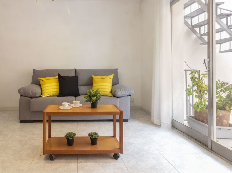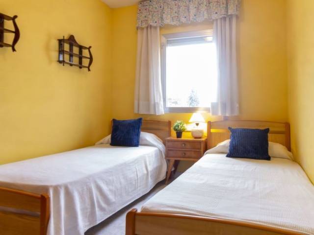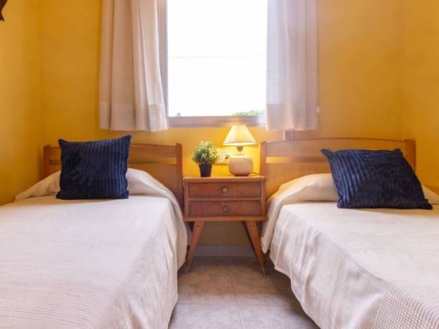 "Carmen", casa estudio 82 m2. Espacioso y luminoso, con mobiliario sencillo y funcional: salón-comedor con mesa de comedor, TV, aire acondicionado y bomba de calor, caliente. Salida al balcón. 1 dorm. con 1 cama-nido (1 pers. 2 x 80 cm). 1 dorm. doble con 2 camas (90 cm). 1 dorm. doble con 1 cama doble (135 cm), baño/WC. Salón con aire acondicionado. Cocina (4 fogones, horno, microondas, congelador). Salida a la terraza. Ducha/WC. Muebles de terraza, barbacoa (portátil). Vista lejana lateral al mar y al jardín. El alojamiento dispone de: lavadora. A tener en cuenta: adecuado para familias. 1 mascota / perro. Sin ascensor. HUTTE046444