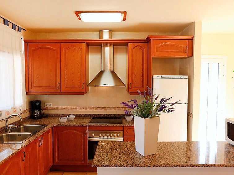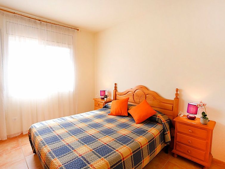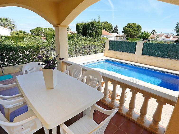 Riumar a 10 km de Deltebre: Casa "Teresa", bonita, agradable. Lugar tranquilo, a 250 m del mar, a 250 m de la playa. Privado: terreno (vallada), piscina rectangular (6 x 3 m, Disponible por temporada: 01.Ene. - 31.Dic.) con escalera interior. Ducha exterior, porche, aparcamiento junto a la casa. Tienda, tienda de comestibles, restaurante, bar 300 m. "TERESA", casa 4 estancias 89 m2. Con mobiliario confortable y agradable: salón-comedor con mesa de comedor y TV. Salida a la terraza, a la terraza-jardín, a la piscina. 1 dorm. con 1 cama de matrimonio y ducha/WC. 2 dorm., cada habitación con 2 camas. Cocina abierta (horno, 1 placas de vitrocerámica, microondas, cafetera eléctrica). Ducha/WC. Aire acondicionado, aire caliente. Muebles de terraza, tumbonas, porche. Vista a la piscina. El alojamiento dispone de: lavadora. Internet (Wifi, gratis). Plaza de aparcamiento junto a la casa. Adecuado para familias. 2 mascotas / perros. HUTTE002066