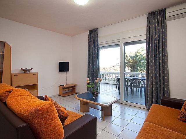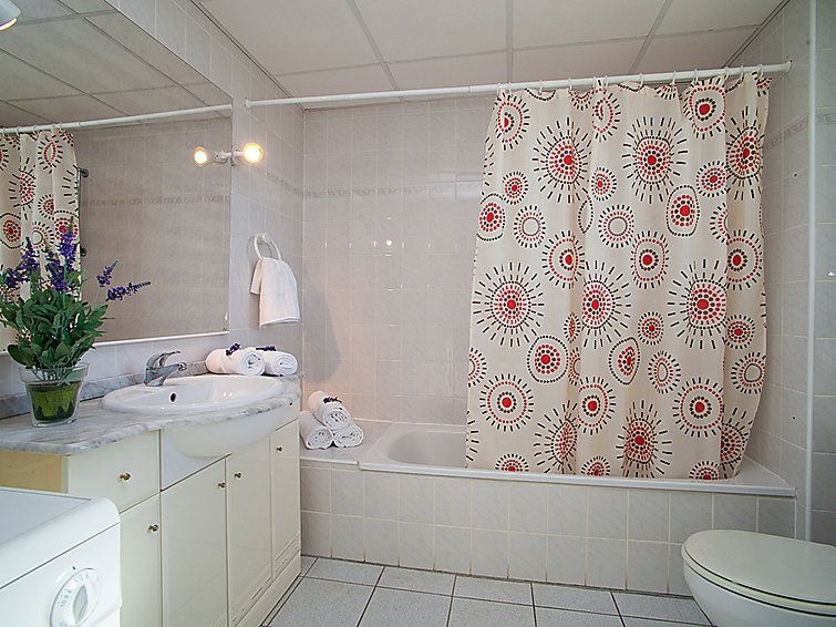 Apartamento de 4 estancias 115 m2, en planta superior. Con mobiliario funcional y confortable: salón-comedor con TV satélite y aire acondicionado. Salida a la terraza. 1 dorm. con 1 cama de matrimonio y baño/bidet/WC. Salida a la terraza. 1 dorm. con 2 camas. 1 dorm. con 2 camas. Cocina abierta (horno, X placas de vitrocerámica, microondas, cafetera eléctrica). Ducha/WC. Terraza grande. Muebles de terraza. Vista al mar, a la piscina y al jardín. El alojamiento dispone de: lavadora. Internet (Wifi, gratis). Adecuado para familias. 2 mascotas / perros. HUTTE001679