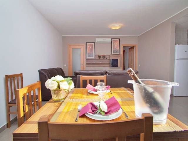 "GAVIOTA 11", casa adosada 4 estancias 89 m2, en la planta baja. Con mobiliario confortable y bonito: salón-comedor con mesa de comedor, TV digital y aire acondicionado. Salida a la terraza-jardín, a la piscina. 1 dorm. con 1 cama de matrimonio (135 cm), ducha/WC. 2 dorm., cada habitación con 2 camas (90 cm). Cocina (horno, 4 placas de vitrocerámica, tostadora, microondas, congelador, cafetera eléctrica). Baño/bidet/WC. Aire acondicionado, aire caliente. Muebles de terraza, barbacoa, tumbonas (2), porche. El alojamiento dispone de: lavadora, plancha, mosquitera. Internet (Wifi, gratis). Plaza de aparcamiento junto a la casa. Adecuado para familias. 2 mascotas / perros. HUTTE000929