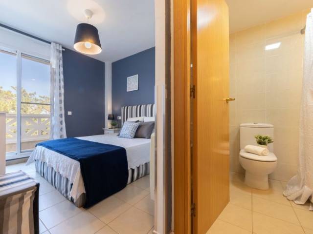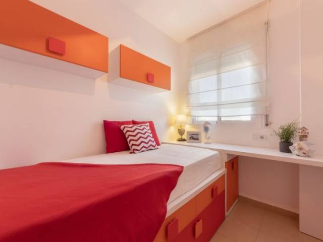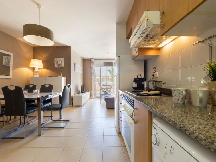 Urb. Riumar a 8 km de Deltebre: Casa de apartamentos "Res Mediterraneo", moderno, agradable, confortable del año 2004. En las afueras de la localidad, a 8 km del centro de Deltebre, lugar tranquilo, a 150 m del mar, a 150 m de la playa. Comunitario: terreno 400 m2 (vallado), piscina rectangular (Disponible por temporada: 01.Jun. - 30.Sep.). Ducha exterior. Privado: terraza (7 m2), muebles de jardín, aparcamiento (número limitado) junto a la casa, posibilidad de aparcamiento en la calle. Tienda de comestibles, supermercado 700 m, restaurante, bar 400 m, playa de arena 150 m. A tener en cuenta: coche recomendable. Adecuado para familias.