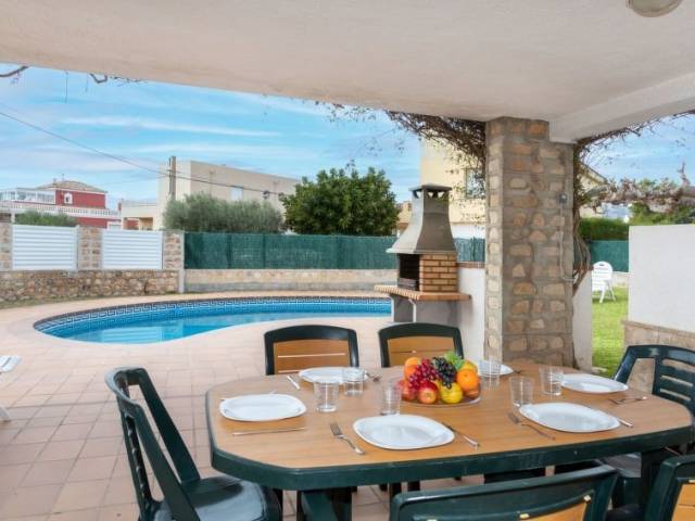 Urb. Calafat a 8 km de L'Ametlla de Mar: Villa "Mar i Cel", agradable, confortable. A 100 m del mar, a 100 m de la playa. Privado: jardín, cuidado con césped y árboles, piscina en forma de riñon (6 x 4 m, 70 - 170 cm de profundidad, Disponible por temporada: 01.Abr. - 01.Nov.). Ducha exterior, terraza-jardín, muebles de jardín, barbacoa, mantenimiento de la piscina a través del propietario/jardinero aparcamiento junto a la casa. Supermercado, restaurante, bar 200 m. Puerto deportivo 500 m. Atracciones en los alrededores: Parque Portaventura 48 km, parque Aquopolis 51 km, parque natura del Delta del Ebro 35 km, Tarragona 57 km, Reus 48 km, Barcelona 153 km. A tener en cuenta: coche recomendable. Grupos de jóvenes sólo bajo petición.