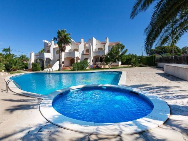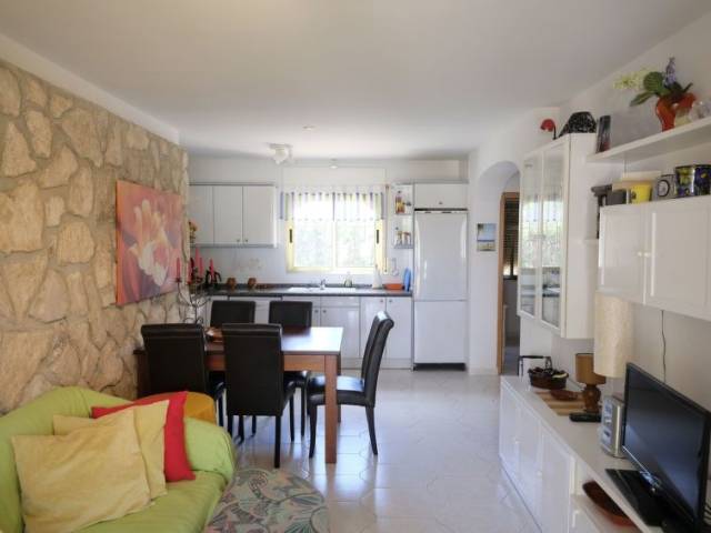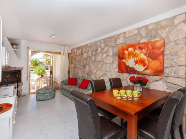 Urb. Tres Cales a 4 km de L'Ametlla de Mar: Casa adosada "Las Palmeras", bonita, agradable de 2 plantas. Por encima Las 3 Calas, en las afueras de la localidad, a 5.5 km del centro de L'Ametlla de Mar, lugar soleado, a 3 km del mar, a 3 km de la playa. Comunitario: jardín grande, bonito, cuidado con césped 2'700 m2, plantas, piscina en forma de riñon (6 x 3 m, 80 - 190 cm de profundidad, Disponible por temporada: 01.Ene. - 31.Dic.). Piscina para niños, mantenimiento de la piscina a través del propietario/jardinero. Privado: ducha exterior. Aparcamiento junto a la casa en el mismo terreno, posibilidad de aparcamiento en la calle. Tienda de comestibles 1.3 km, supermercado 1.3 km, restaurante 1.3 km, bar 1.3 km, estación de tren 5.5 km. Atracciones en los alrededores: Parque Portaventura 48 km, parque Aquopolis 51 km, parque natura del Delta del Ebro 35 km, Tarragona 57 km, Reus 48 km, Barcelona 153 km. A tener en cuenta: coche recomendable. Grupos de jóvenes sólo bajo petición.