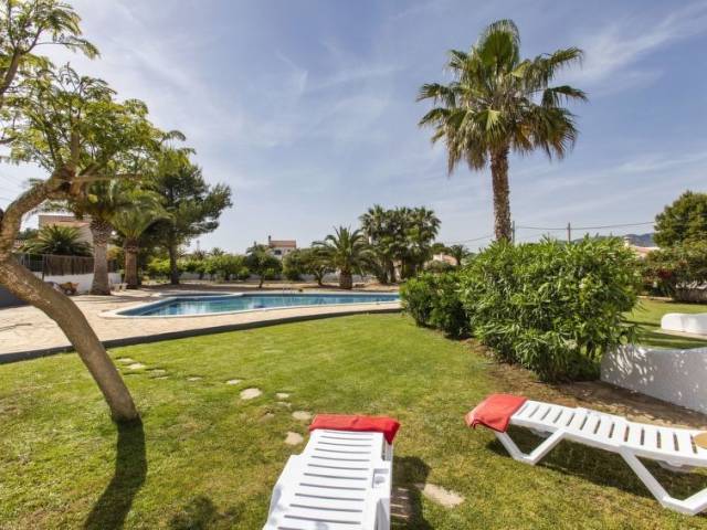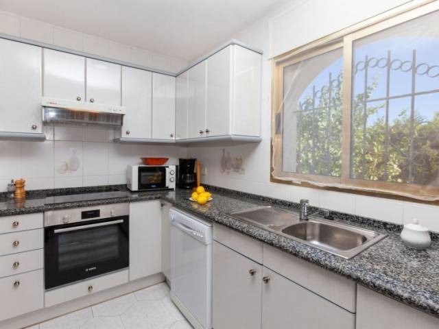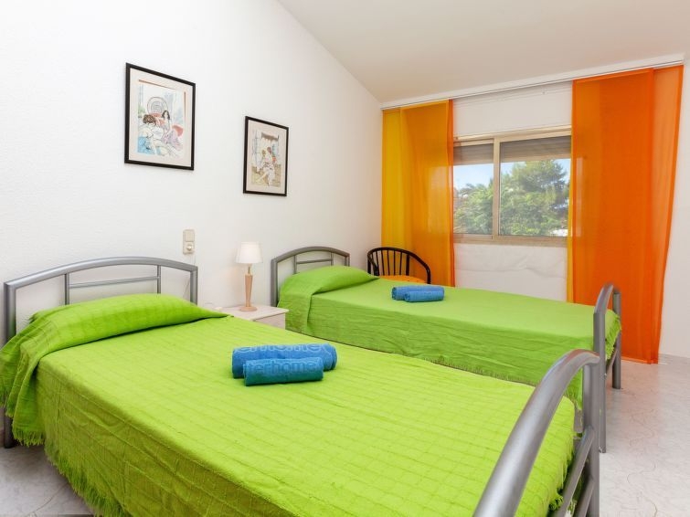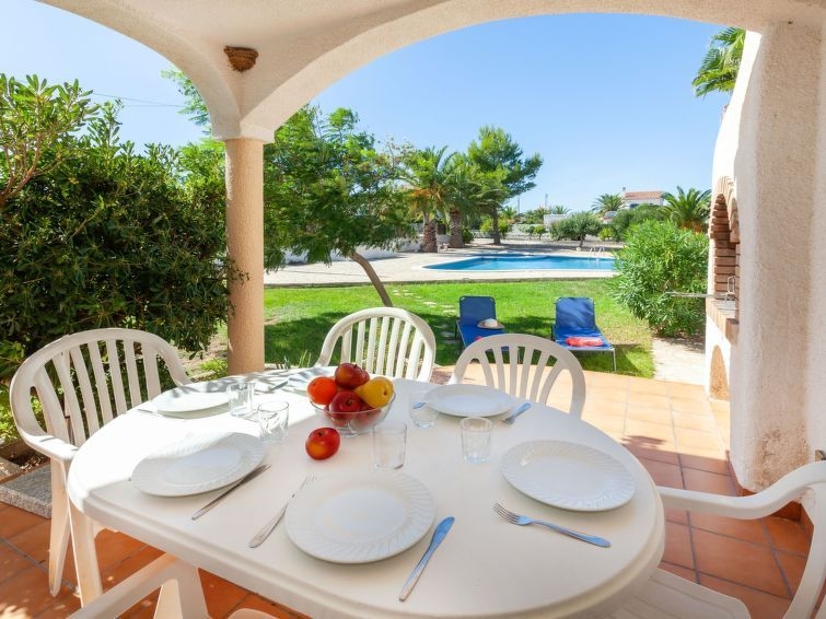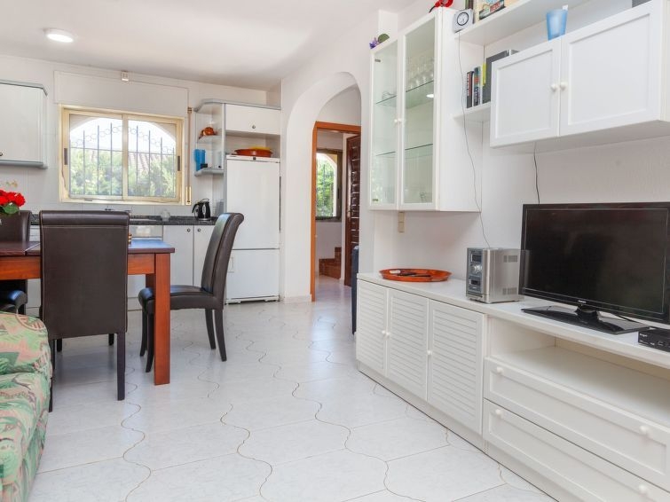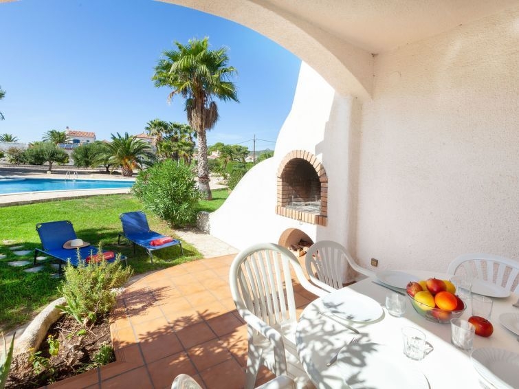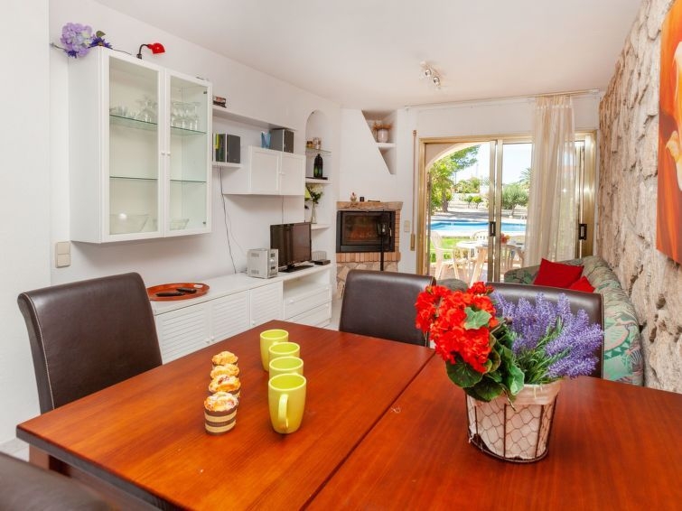 "Las Palmeras", casa adosada 4 estancias 78 m2. Con mobiliario funcional y confortable: salón-comedor con chimenea, TV satélite, TV digital y pantalla plana. Salida a la terraza. 1 dorm. con 1 cama de matrimonio (135 cm). Cocina abierta (horno, lavavajillas, 4 placas de vitrocerámica, tostadora, hervidor de agua eléctrico, microondas, cafetera eléctrica). Ducha/WC. Ningún tipo de calefacción. Planta superior: 1 dorm. con 1 cama de matrimonio (135 cm). Salida al balcón. 1 dorm. con 2 camas (90 cm, 150 cm de longitud). Baño/WC. Terraza pequeña. Muebles de terraza, barbacoa. Vista bonita a la piscina y al jardín. El alojamiento dispone de: lavadora, plancha, cuna hasta 2 años, secador de pelo. Internet (Wifi, gratis). A tener en cuenta: TV solamente DE, EN, FR. HUTTE000831