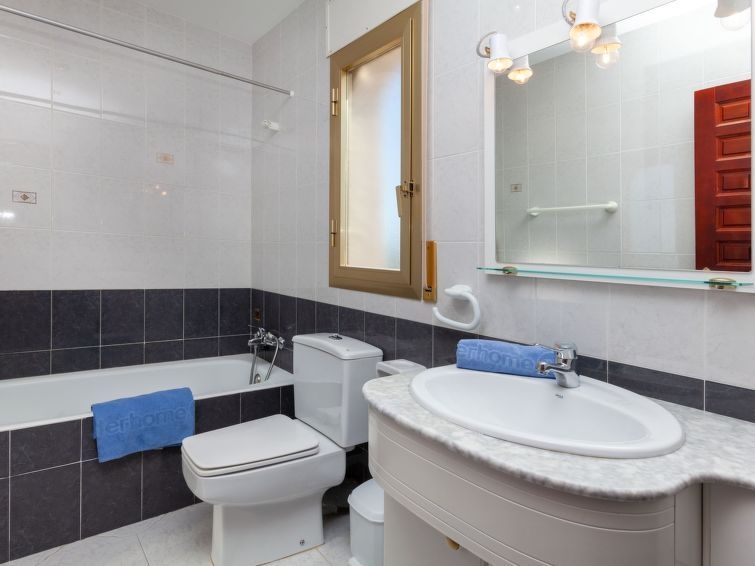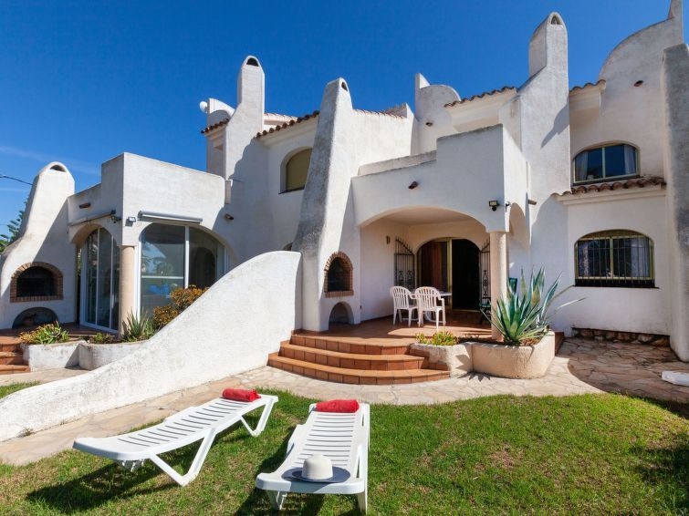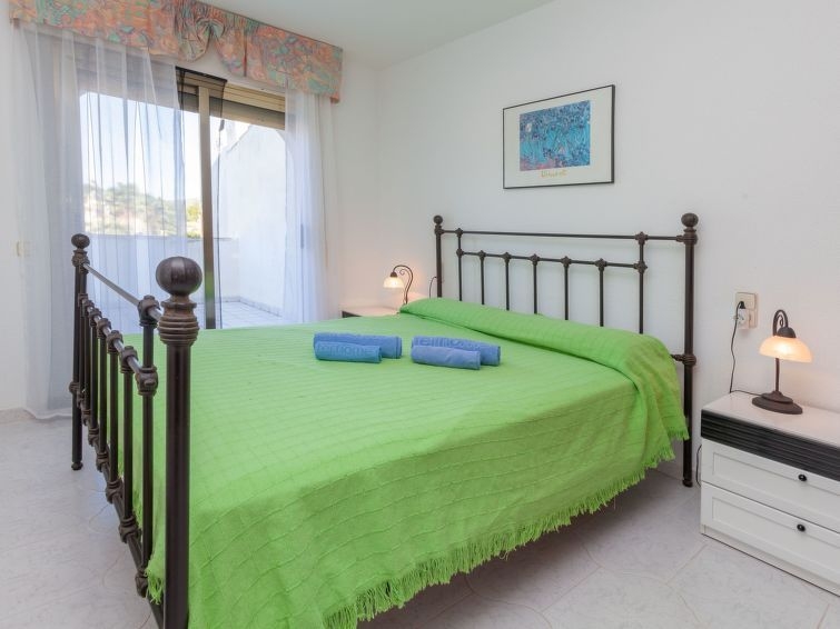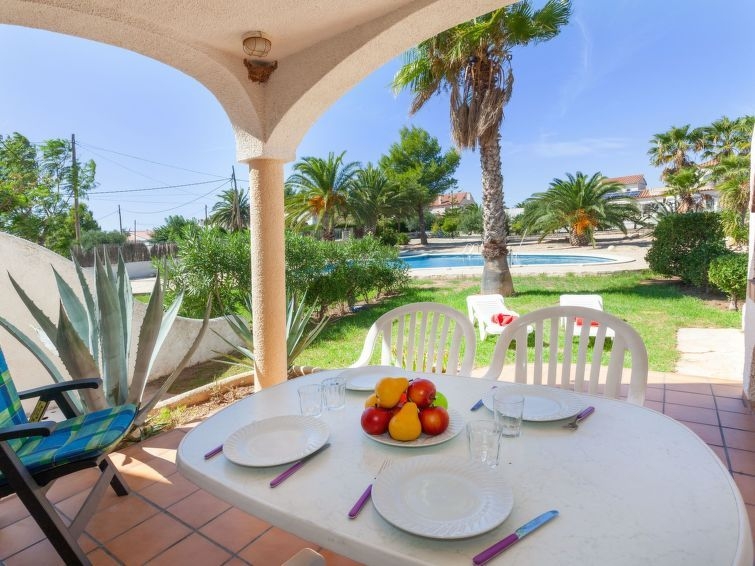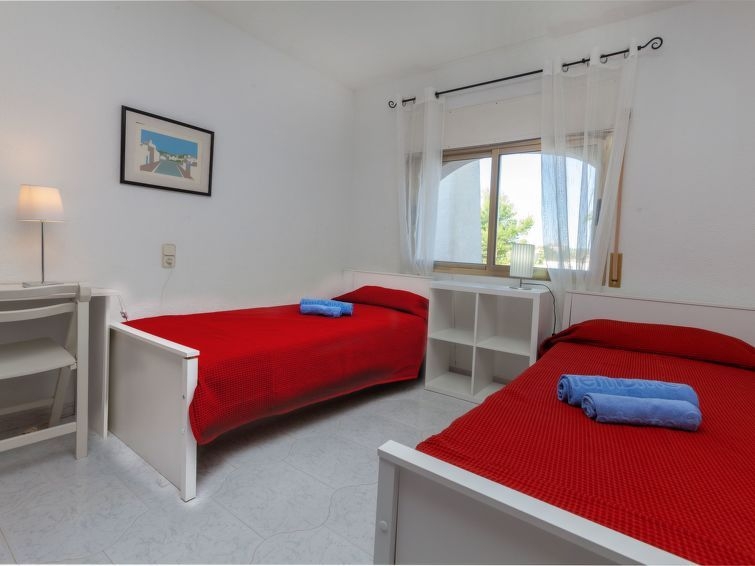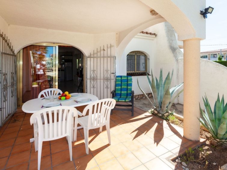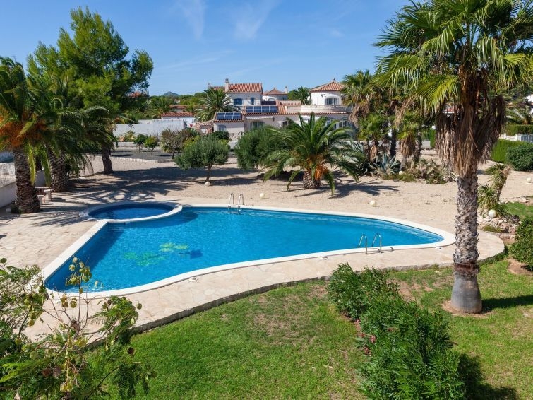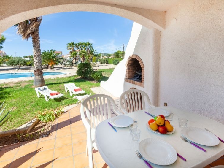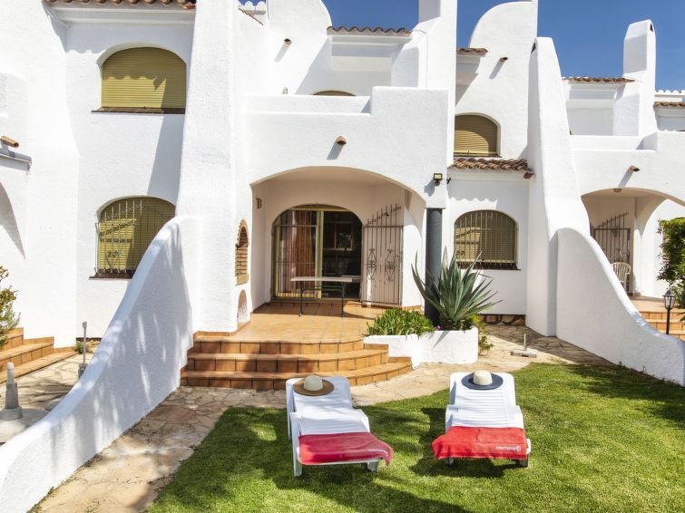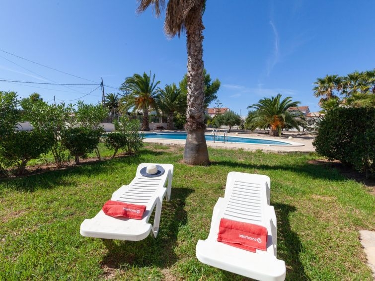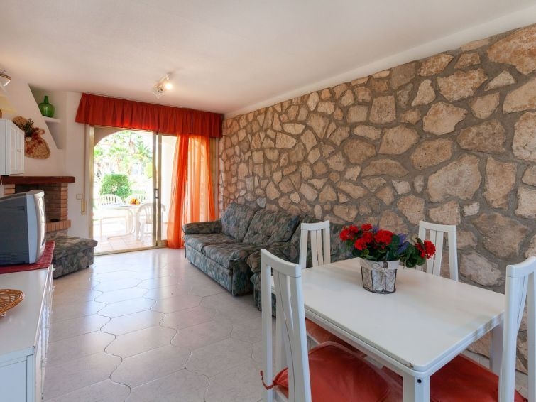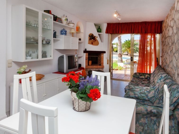 "Las Palmeras", casa adosada 4 estancias 78 m2. Con mobiliario funcional y confortable: salón-comedor con chimenea, TV satélite, TV digital y pantalla plana. Salida a la terraza. 1 dorm. con 1 cama de matrimonio. Cocina abierta (horno, lavavajillas, 4 placas de vitrocerámica, tostadora, hervidor de agua eléctrico, microondas, cafetera eléctrica). Ducha/WC. Ningún tipo de calefacción. Planta superior: 1 dorm. con 1 cama de matrimonio. Salida al balcón. 1 dorm. con 2 camas. Baño/WC. Terraza pequeña. Muebles de terraza, barbacoa. Vista bonita a la piscina y al jardín. El alojamiento dispone de: lavadora, plancha, cuna hasta 2 años, secador de pelo. Internet (Wifi, gratis). A tener en cuenta: TV solamente DE, EN, FR. HUTTE000831
