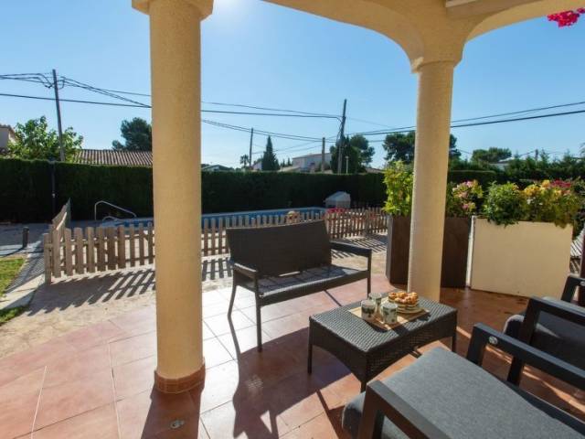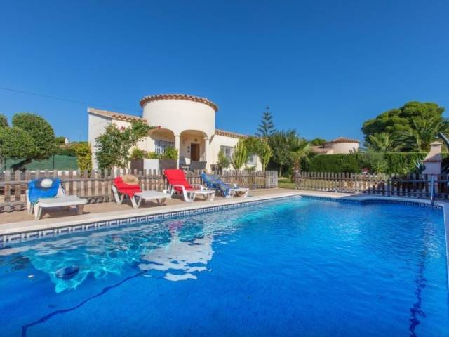 Urb. Tres Cales a 4 km de L'Ametlla de Mar: Villa "Villa del Sol". En las afueras de la localidad, a 4.8 km del centro de L'Ametlla de Mar, lugar tranquilo, soleado, a 1.1 km del mar, a 1.1 km de la playa. Privado: terreno, piscina vallada (8 x 4 m, 80 - 190 cm de profundidad, Disponible por temporada: 01.Abr. - 31.Oct.). Terraza, muebles de jardín, barbacoa, mantenimiento de la piscina a través del propietario/jardinero aparcamiento (para 2 coches) en el mismo terreno. Tienda de comestibles 700 m, supermercado 150 m, restaurante, bar 700 m, estación de tren 4.8 km, playa de arena 1.1 km. Atracciones en los alrededores: Parque Portaventura 48 km, parque Aquopolis 51 km, parque natura del Delta del Ebro 35 km, Tarragona 57 km, Reus 48 km, Barcelona 153 km. A tener en cuenta: coche recomendable. Grupos de jóvenes sólo bajo petición.