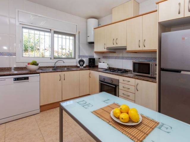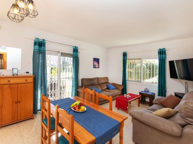 "Villa del Sol", villa 4 estancias 120 m2. Con mobiliario confortable y agradable: salón-comedor con mesa de comedor, TV satélite y aire acondicionado. 2 dorm., cada habitación con 1 cama de matrimonio (135 cm), aire acondicionado. 1 dorm. con 2 camas (90 cm), aire acondicionado. Cocina (4 fogones, horno, lavavajillas, tostadora, microondas, cafetera eléctrica). Baño/WC, ducha/WC. Ningún tipo de calefacción. Terraza-jardín. Muebles de terraza, barbacoa. El alojamiento dispone de: lavadora, plancha, secador de pelo. Plaza de aparcamiento junto a la casa. A tener en cuenta: TV solamente FR. HUTTE003045