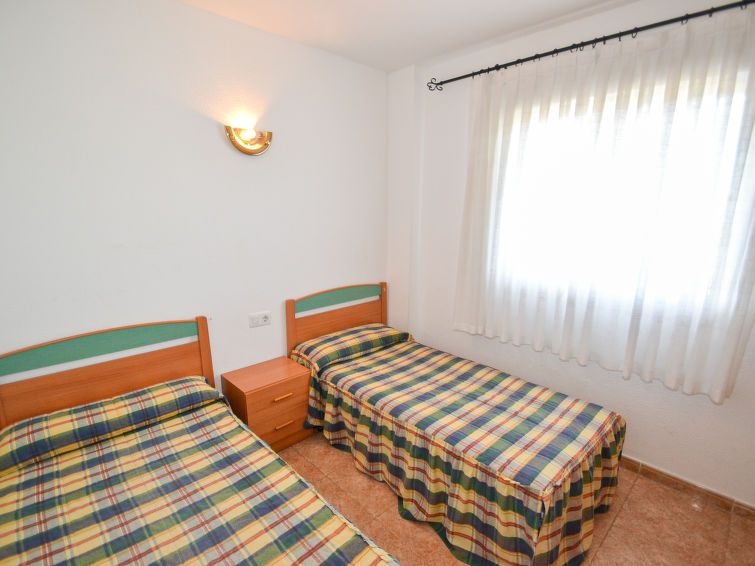 "Riscos F", apartamento de 3 estancias 67 m2 en el 2° piso. Con mobiliario sencillo y funcional: salón-comedor con 1 sofá-cama doble (135 cm, 190 cm de longitud), TV digital y ventilador. Salida al balcón. 1 dorm. con 1 cama (90 cm, 190 cm de longitud), 1 cama de matrimonio (150 cm, 190 cm de longitud). Salida a la terraza. 1 dorm. con 2 camas (90 cm, 190 cm de longitud). Salida a la terraza. Cocina abierta (horno, 4 placas de vitrocerámica, tostadora, microondas, cafetera eléctrica). Ducha/WC. Ningún tipo de calefacción. Terraza. Muebles de terraza. Vista a la piscina y al jardín. El alojamiento dispone de: lavadora, plancha. Internet (Wifi, gratis). A tener en cuenta: casa para no fumadores. 1 mascota / perro. HUTT-007496