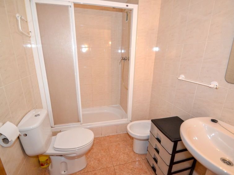 La Pineda a 2 km de Salou: Casa de apartamentos "Riscos", agradable. Lugar soleado, excelente situación: muy céntrica pero tranquila, a 350 m del mar, a 350 m de la playa. Comunitario: piscina (7 x 15 m, 90 - 180 cm de profundidad, Disponible por temporada: 01.Jun. - 30.Sep.). Parque infantil. En el inmueble: ascensor. Posibilidad de aparcamiento en la calle. Tienda 100 m, supermercado 200 m, restaurante, bar 100 m, parada de autobús 300 m. Campo de golf 100 m. Atracciones en los alrededores: parque temático Portaventura 2 km, parque acuático Aquopolis 500 m, Spa Aquum 500 m.