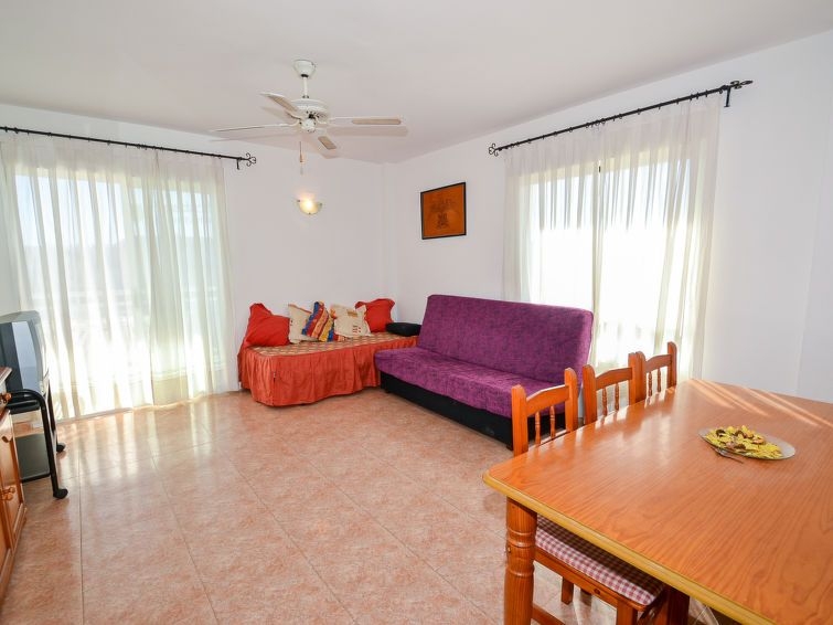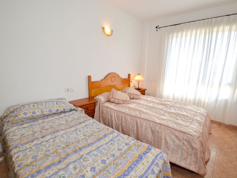 "Los Juncos A", apartamento de 3 estancias 67 m2 en el 5° piso. Con mobiliario sencillo y funcional: salón-comedor con 1 sofá-cama doble (135 cm, 190 cm de longitud), TV digital y ventilador. Salida al balcón. 1 dorm. con 1 cama de matrimonio (135 cm, 190 cm de longitud). Salida a la terraza. 1 dorm. con 2 camas (105 cm, 190 cm de longitud). Salida a la terraza. Cocina abierta (horno, 4 placas de vitrocerámica, tostadora, microondas, cafetera eléctrica). Baño/WC. Ningún tipo de calefacción. Terraza. Muebles de terraza. El alojamiento dispone de: lavadora, plancha. Internet (Wifi, gratis). A tener en cuenta: casa para no fumadores. 1 mascota / perro. HUTT-007498