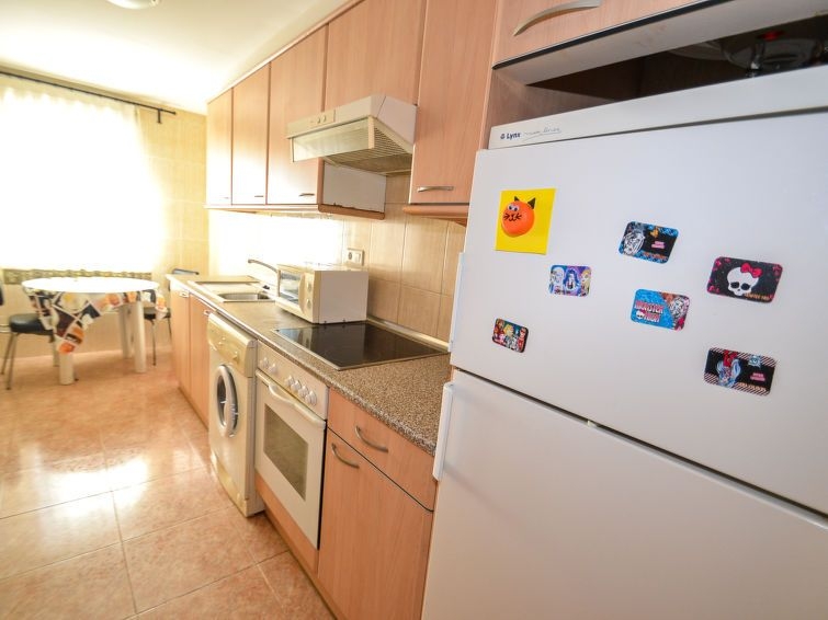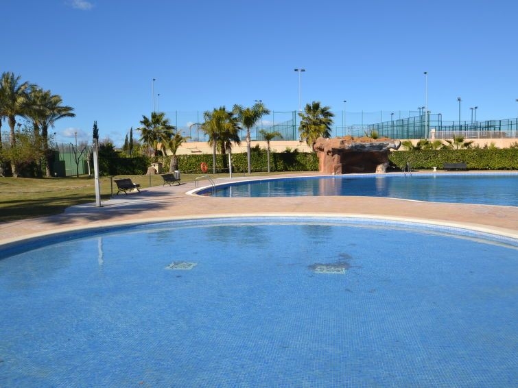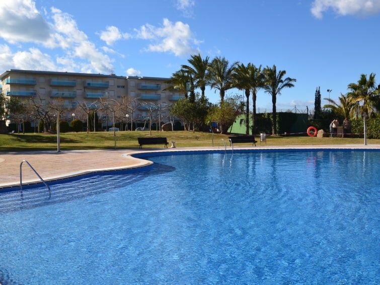 La Pineda a 2 km de Salou: Casa de apartamentos "Los Juncos", idóneo para niños, agradable. Lugar soleado, excelente situación: muy céntrica pero tranquila, a 300 m del mar, a 300 m de la playa. Comunitario: jardín, piscina (15 x 5 m, Disponible por temporada: 01.Jun. - 30.Sep.). Piscina para niños, ducha exterior, tenis de mesa, básquet, petanca, parque infantil. En el inmueble: ascensor. Posibilidad de aparcamiento en la calle. Tienda 100 m, supermercado 200 m, restaurante, bar 100 m, parada de autobús 300 m. Campo de golf 100 m. Atracciones en los alrededores: parque temático Portaventura 2 km, parque acuático Aquopolis 500 m, Spa Aquum 500 m.