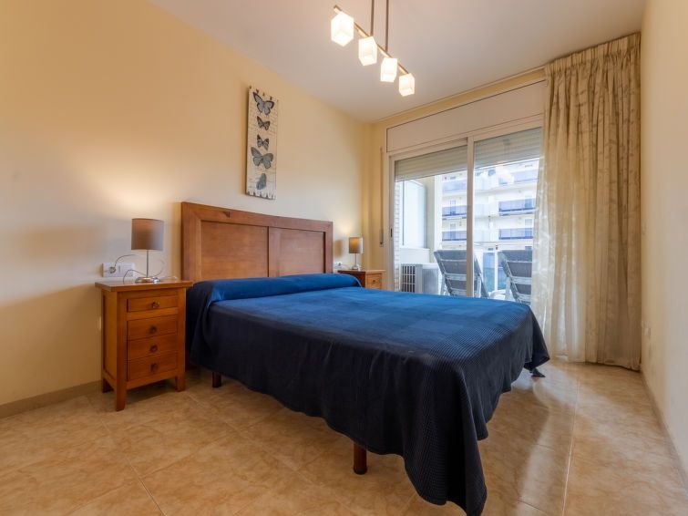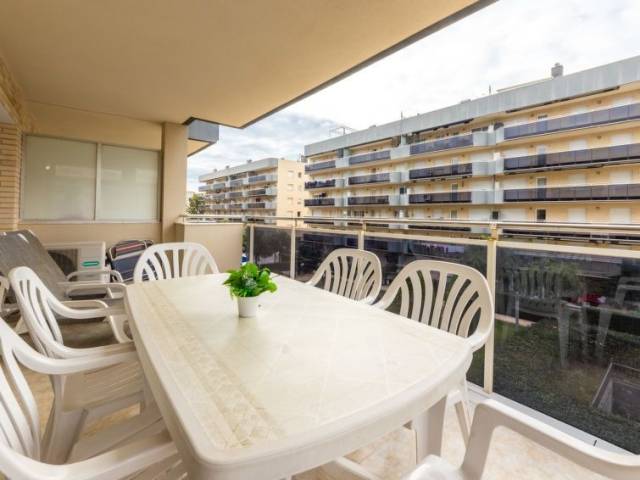 Apartamento de 3 estancias 65 m2. Con mobiliario funcional: salón-comedor con 1 sofá-cama doble, TV satélite y pantalla plana. Salida a la terraza. 1 dorm. con 1 cama de matrimonio (135 cm, 190 cm de longitud). 1 dorm. con 2 camas (90 cm, 190 cm de longitud). Cocina (horno, 4 placas de vitrocerámica, hervidor de agua eléctrico, microondas, cafetera eléctrica). Ducha/WC. Aire acondicionado, aire caliente. Terraza. Muebles de terraza. El alojamiento dispone de: lavadora, plancha, trona, cuna, secador de pelo. Internet (Wifi, gratis). Plaza de aparcamiento n. 49. HUTT-000344