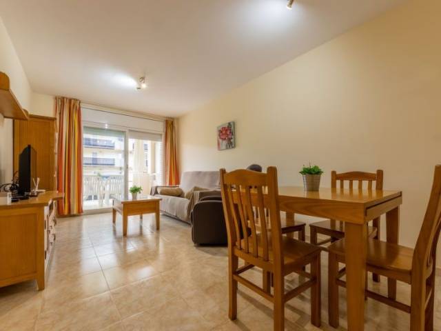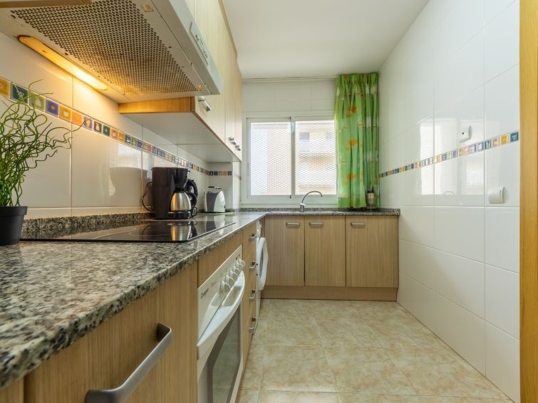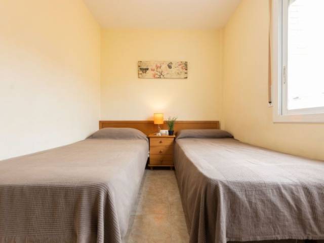 Apartamento de 3 estancias 65 m2. Con mobiliario funcional: salón-comedor con 1 sofá-cama doble, TV satélite y pantalla plana. Salida a la terraza. 1 dorm. con 1 cama de matrimonio (135 cm, 190 cm de longitud). 1 dorm. con 2 camas (90 cm, 190 cm de longitud). Cocina (horno, 4 placas de vitrocerámica, hervidor de agua eléctrico, microondas, cafetera eléctrica). Ducha/WC. Aire acondicionado, aire caliente. Terraza. Muebles de terraza. El alojamiento dispone de: lavadora, plancha, trona, cuna, secador de pelo. Internet (Wifi, gratis). Plaza de aparcamiento n. 46. HUTT-000342