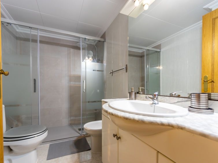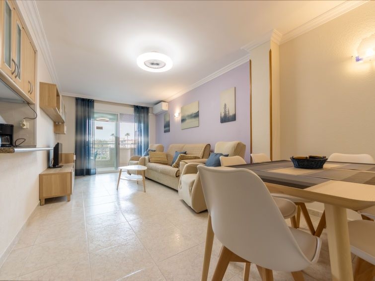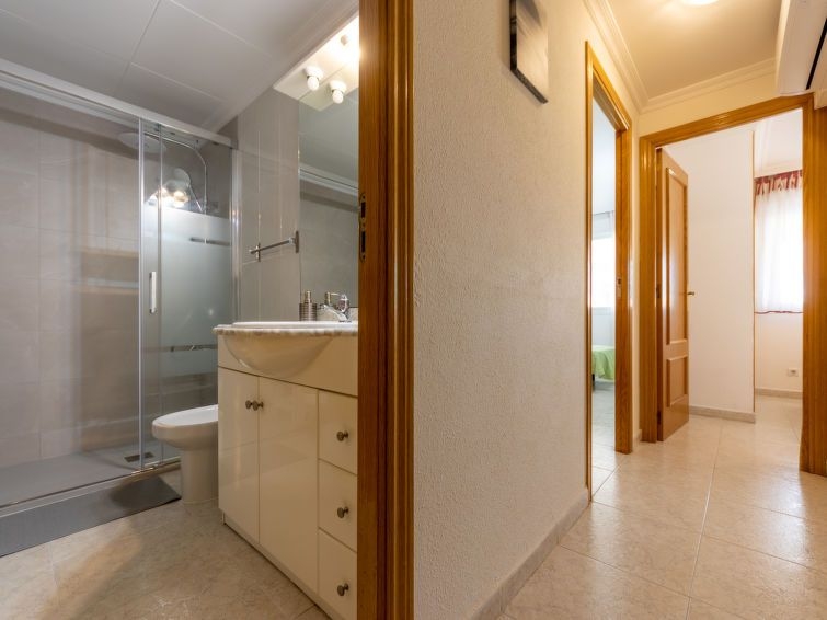 "Aguamarina 7", apartamento de 3 estancias 68 m2 en el 3° piso. Con mobiliario sencillo y funcional: salón-comedor con 1 sofá-cama (135 cm, 190 cm de longitud), TV digital y aire acondicionado. Salida a la terraza. 1 dorm. con 1 cama de matrimonio (140 cm, 200 cm de longitud). 1 dorm. con 2 camas (90 cm, 190 cm de longitud). Cocina abierta (horno, lavavajillas, 1 placas de vitrocerámica, 4 fuegos, tostadora, hervidor de agua eléctrico, microondas, cafetera eléctrica). Baño/WC. Calefacción no en todas las estaciones. Terraza. Muebles de terraza. Vista a la piscina y al jardín. El alojamiento dispone de: lavadora, plancha, cuna, secador de pelo. Internet (Wifi, gratis). Plaza de aparcamiento n. 59 por Pep Ventura (cubierto). A tener en cuenta: casa para no fumadores. HUTT-062773