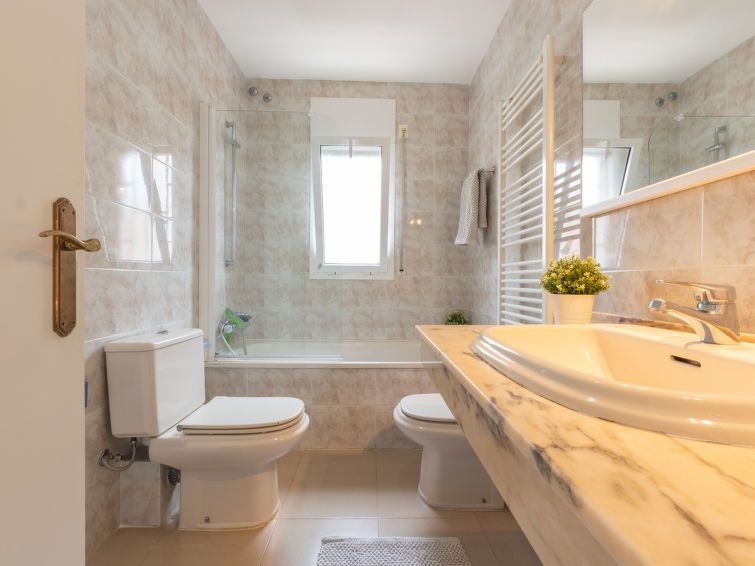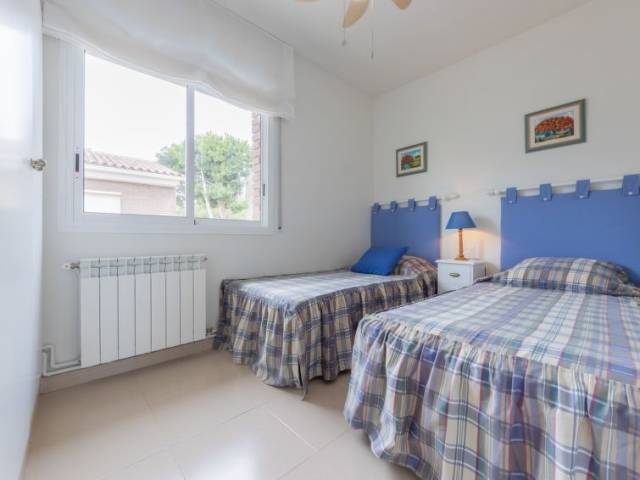 "Canyadell", casa adosada 4 estancias 108 m2 en 2 plantas. Vivienda adecuada para 4 adultos + 2 niños. Con mobiliario funcional y confortable: salón-comedor con TV satélite y aire acondicionado. Salida a la terraza. Cocina (3 fogones, lavavajillas, tostadora, hervidor de agua eléctrico, microondas, cafetera eléctrica). Ducha/WC. Ningún tipo de calefacción. Planta superior: 1 dorm. con 1 cama de matrimonio (135 cm, 190 cm de longitud), aire acondicionado. 1 dorm. con 2 camas (90 cm, 190 cm de longitud). 1 dorm. con 2 camas (80 cm, 190 cm de longitud). Baño/WC. Terraza. Muebles de terraza, barbacoa, tumbonas (2). Vista a la piscina. El alojamiento dispone de: lavadora, plancha, cuna hasta 3 años, secador de pelo. Internet (Wifi, gratis). A tener en cuenta: adecuado para familias. Casa para no fumadores. TV solamente ES, FR. La piscina descrita es de uso privado. HUTT0014904