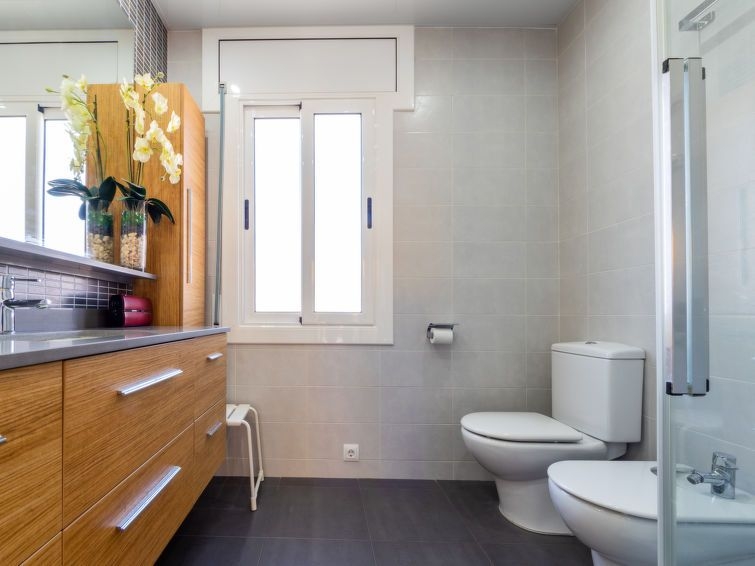 "L'Estel", apartamento de 4 estancias 104 m2 en el 1° piso. Vivienda adecuada para 4 adultos + 2 niños. Luminoso, parcialmente reformado en 2016, con mobiliario funcional y confortable: salón-comedor con TV digital, pantalla plana, aire acondicionado y ventilador. 1 dorm. con 2 camas (90 cm, 190 cm de longitud), aire acondicionado. 1 dorm. con 1 cama de matrimonio (150 cm, 190 cm de longitud), aire acondicionado. 1 dorm. con 1 cama-nido (2 x 80 cm, 190 cm de longitud). Cocina abierta (lavavajillas, 3 placas de vitrocerámica, tostadora, hervidor de agua eléctrico, microondas, cafetera eléctrica). Ducha/WC, WC separado. Ningún tipo de calefacción. Terraza 13 m2. Muebles de terraza. Vista a la localidad. El alojamiento dispone de: lavadora, plancha, trona, cuna hasta 3 años, secador de pelo. Internet (Wifi). A tener en cuenta: adecuado para familias. Apartamento para no fumadores. TV solamente ES. HUTT061573